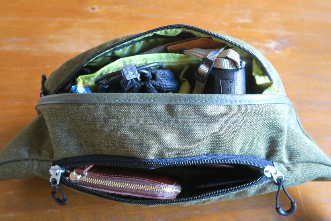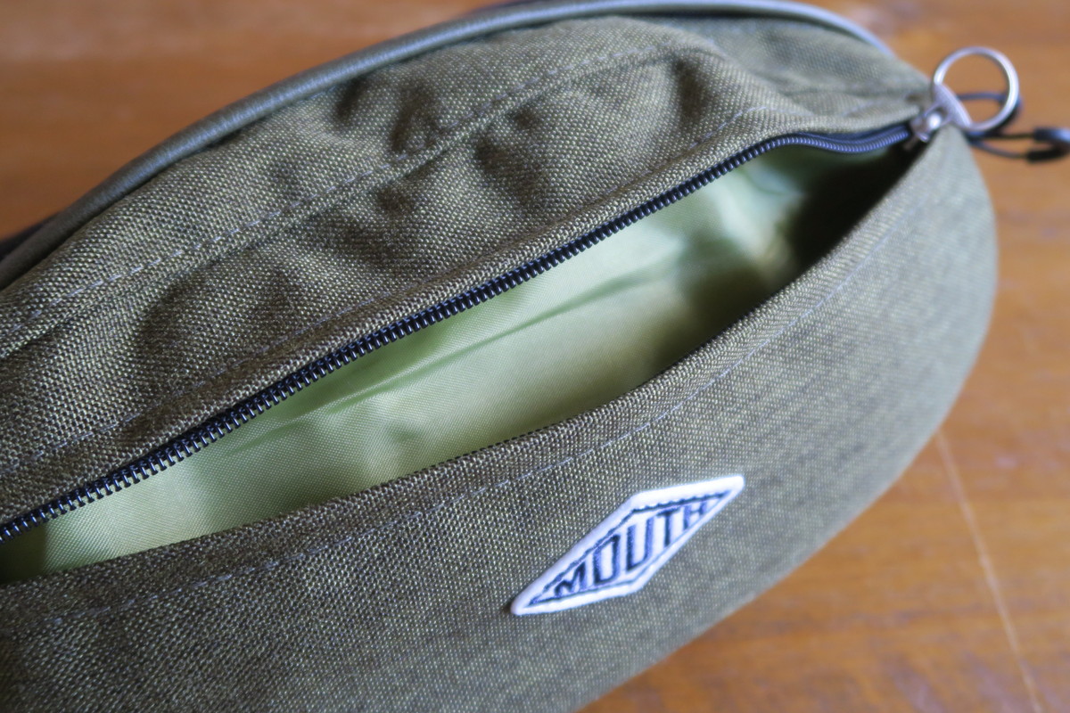 この手の表側にあるポケットって、多くのボディバッグには付いています。でも実はこれまで、有効に使えたことがなく…。おそらくこの「BUSY MOUTH」でもあまり使わいかも…。ただし、しっかりと閉められるので、予備のSDカードなどを入れておくにはいいかもしれません。