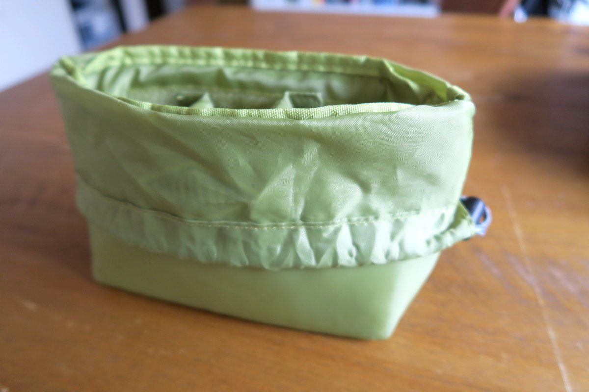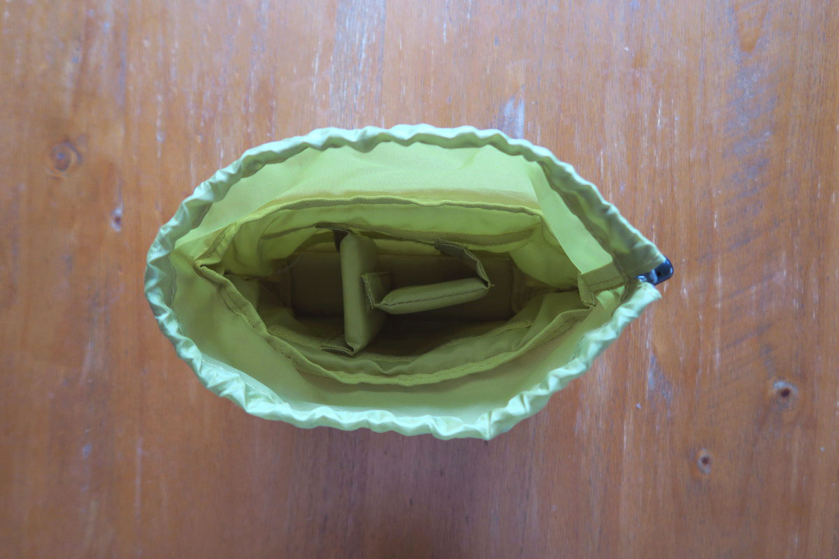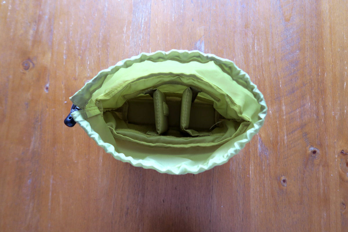 なので、このファスナーからはインナーケースとバッグの体側の隙間にアクセスすることになります。インナーケースにはカメラを入れる。でもカメラの他にも、財布やスマホなどを入れたい。それらは取り出す機会が多い。カメラにはストラップが付いているから、財布やスマホをインナーケースに入れると、ストラップが邪魔で取り出しづらい。それって「テールメイトS」の時と変わらない。