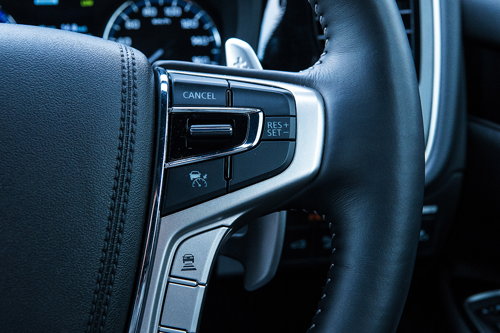 アウトランダーPHEVが採用する車両運動統合制御システム“S-AWC(スーパー・オール・ホイール・コントロール)”は、モーター駆動ならではの優れたレスポンスを活かし、クルマの走行状況や路面μの変化に対し、瞬時に前後のトルク配分を行うのみならず、左右の駆動力配分もコントロールする三菱自動車独自の技術だが、2019年モデルでは、その制御を刷新。ツインモーター4WDの特性をより活かした駆動力制御で、4本のタイヤの性能をバランスよく、最大限に発揮できるセットアップにしている。