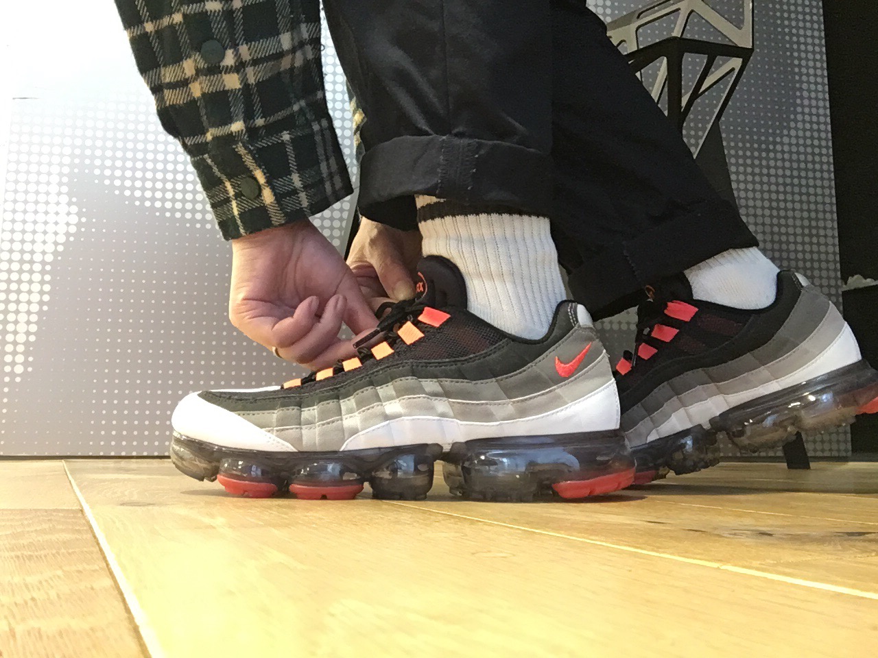ヴェイパーマックスのソールを履かせたハイブリッドモデルの噂はありましたが、まさか95で実現するとは。ただただビックリ!というのが率直な感想です。ちなみにワタクシ、両方持っていますが、買っちゃうことは間違いなさそうです。やっぱりハイブリッドは完全に別物ですね~。でも、オサイフが…。