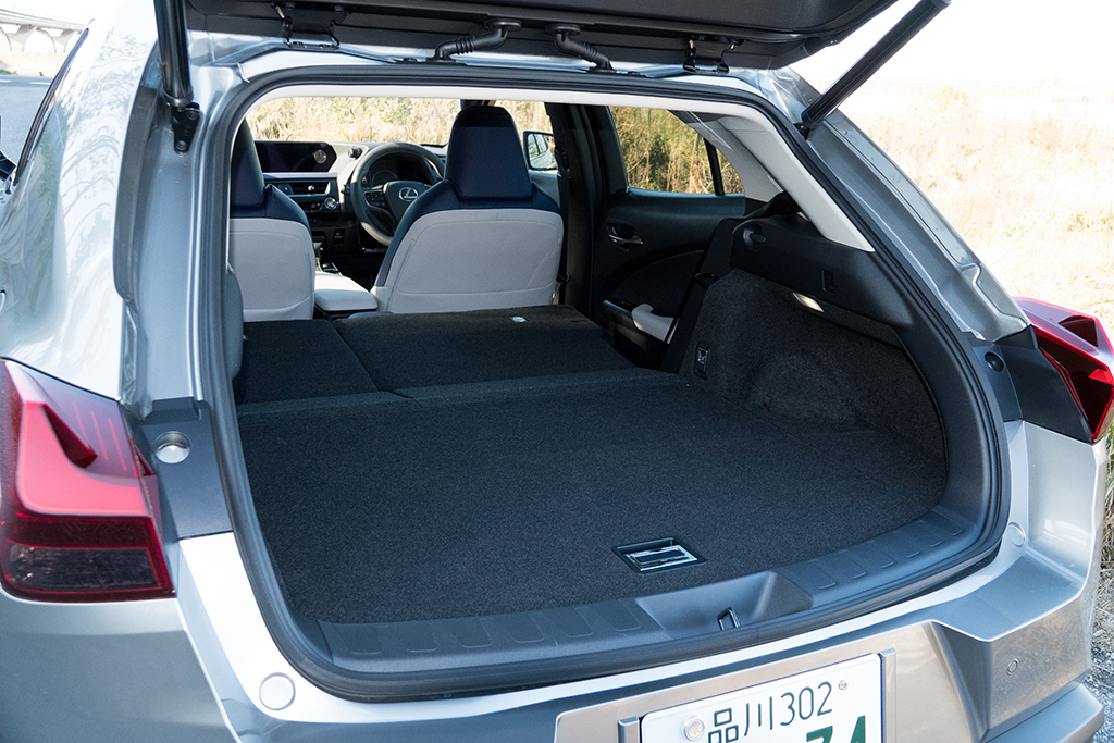 また、一部で“ゴルフバッグを横向きに積載できない“ことが話題となっているUXのラゲッジスペースは、床下の収納部を除けば容量220Lと限られていて、そこへアクセスするリアゲートの開口部も、最近の使い勝手を重視したクルマと比べると驚くほど狭い。