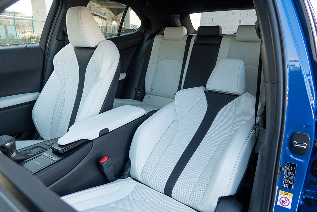UXはボディがコンパクトな分、車内スペースはさほど広くない。リアシートには大人2名が難なく座れるものの、小さなお子さんの世話をするにはちょっと狭く、ファミリーユースには物足りない。