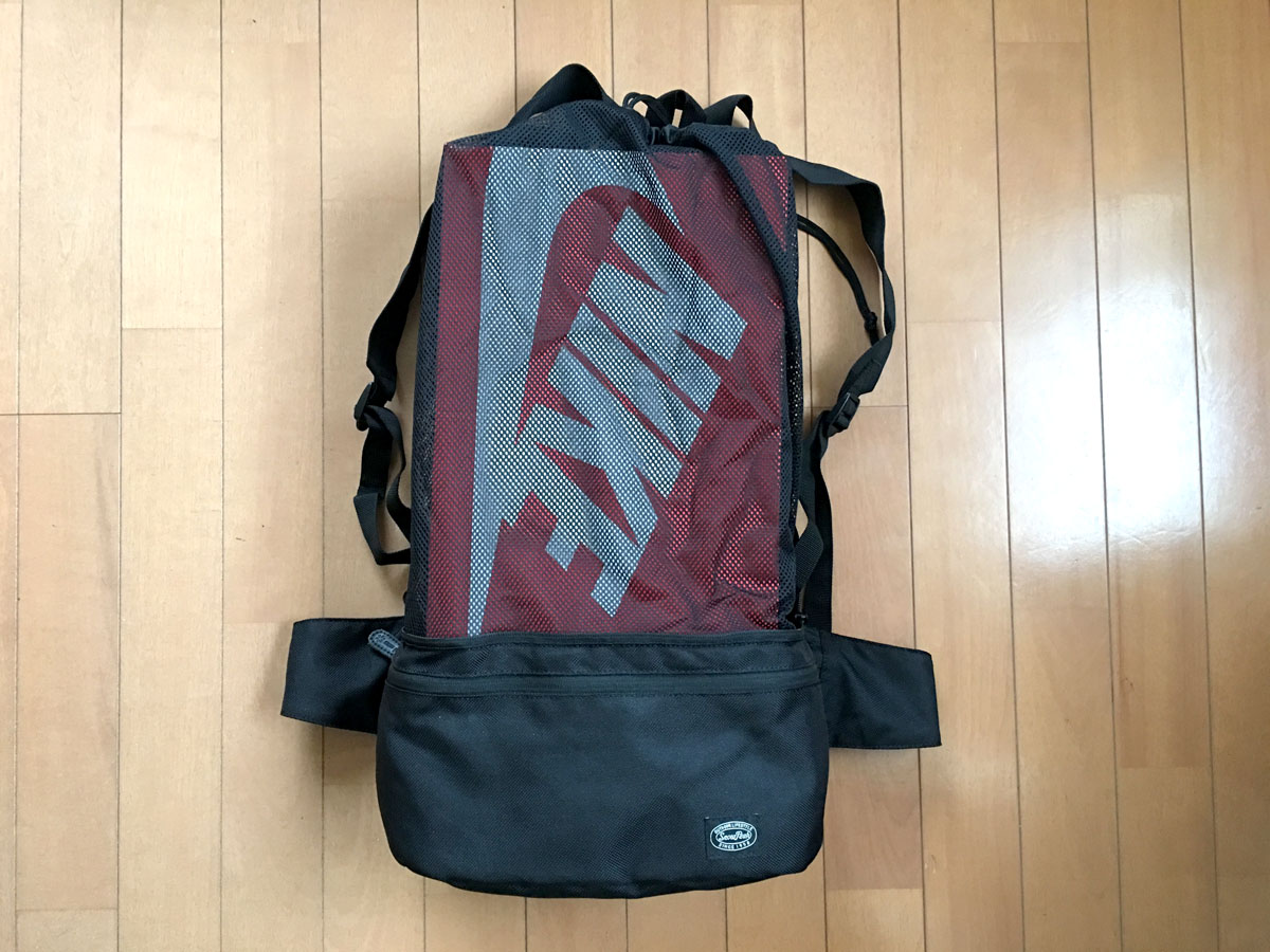 一見するとシンプルな普通のウエストバッグが、一瞬でスニーカーボックスもスッポリ収納できちゃうバックパックに早変わりするなんて、とってもお得ですね~。しかもメッシュで透けるから、ちょっとした自慢にもなるし「いや~、バレちゃいました!? あっ、そっか、メッシュでしたね~」なんて、“しらこい”顔で街を行くのもあり!?(※ワタクシ本間の主観です)