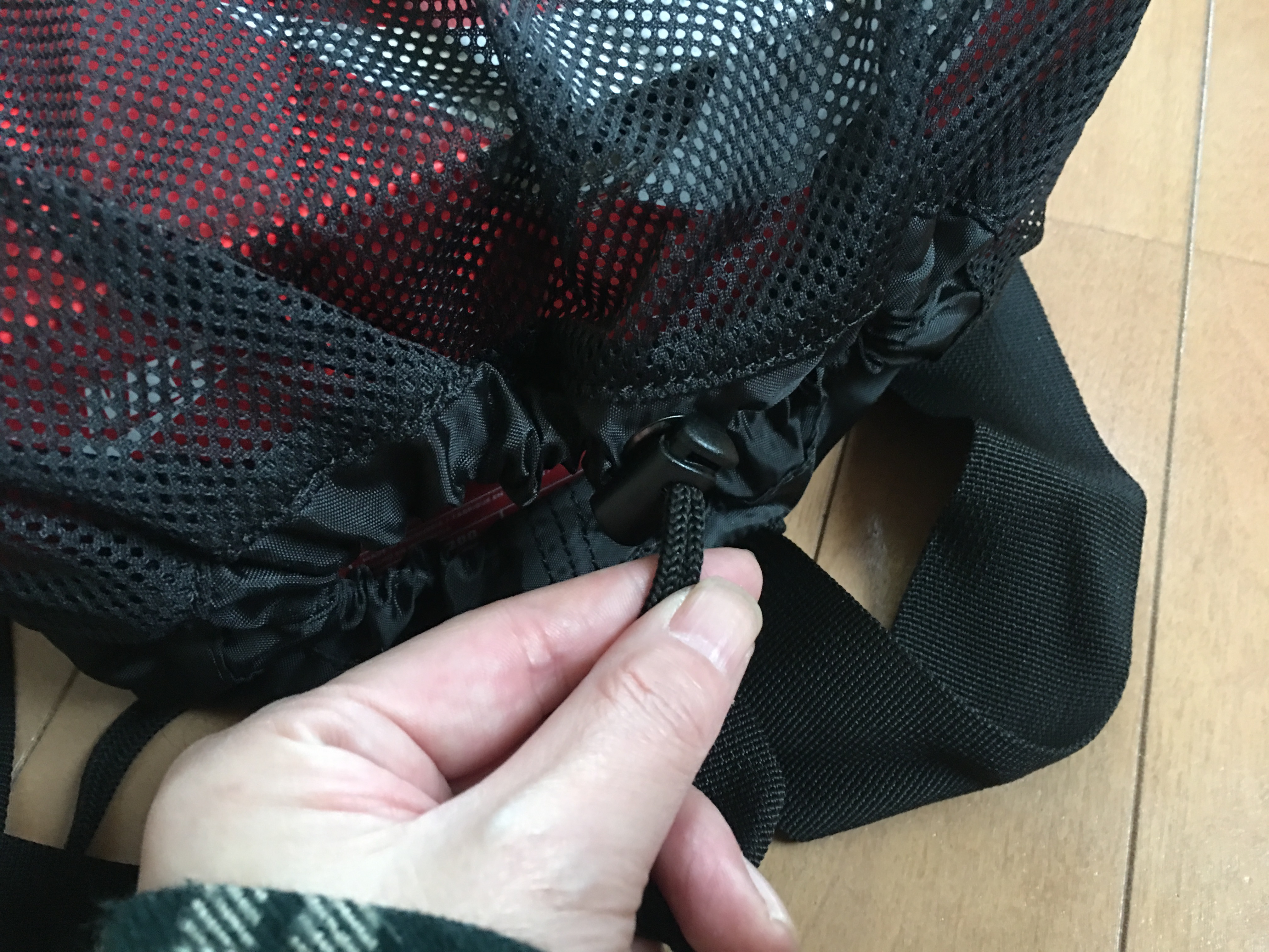 トップは巾着になっています。プラスチック製のストッパーが付くので、お手軽&確実にロックできちゃいますよ。
