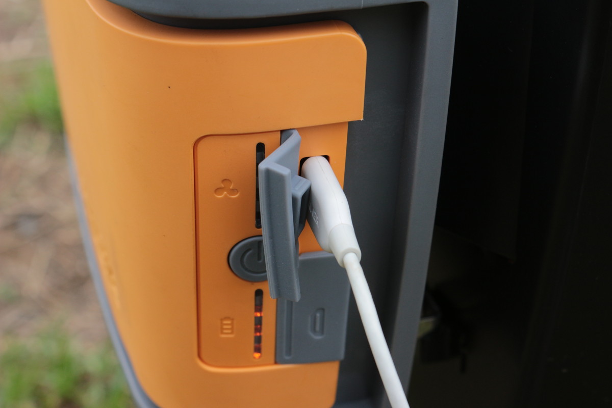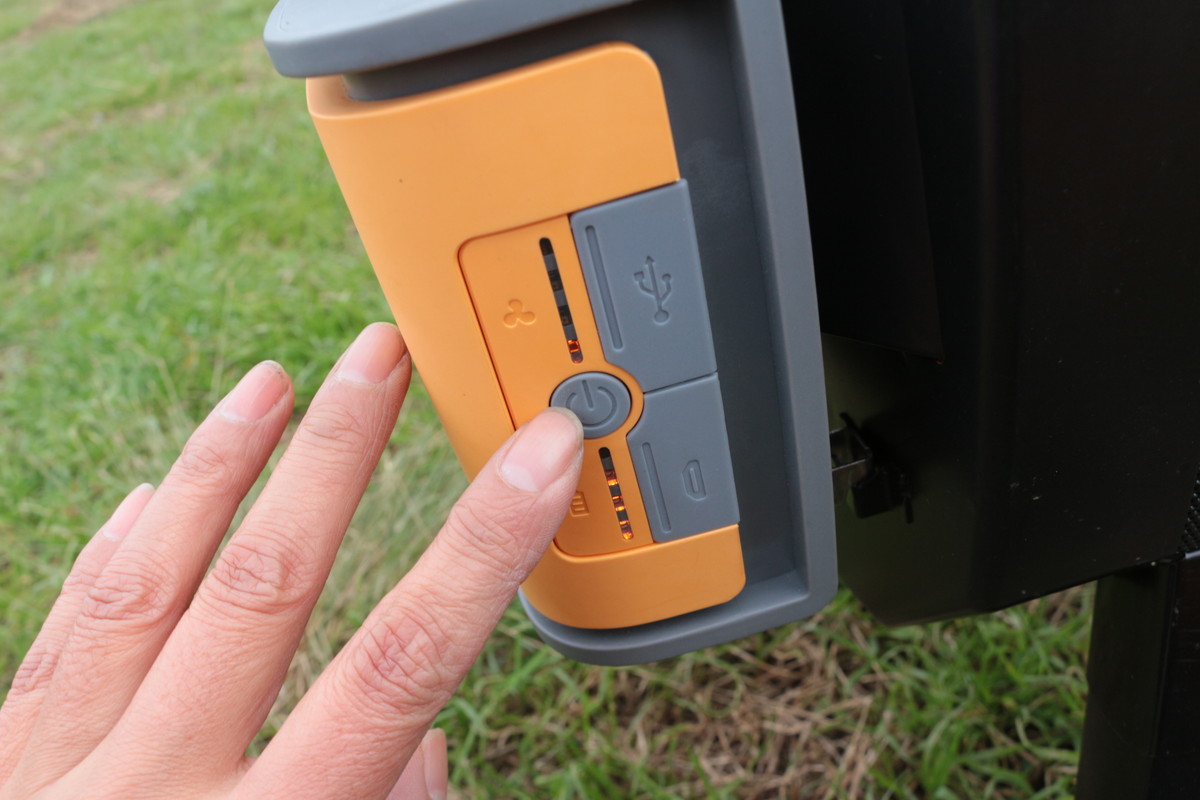 ファイアピットのバッテリーは10400mAh。内蔵ファンを5〜24時間回せますが、焚き火の間、ずっとファンを回すことはありません。本体が全面メッシュで空気が入りやすい構造ですし、燃料ラックに灰がたまることはありません。そのためファンを回すのは薪への着火、炭火での火力コントロールなど1泊のキャンプであれば稼働時間はのべ2時間で事足ります。「キャンプストーブ2」や「ベースキャンプ」とは違い発電・蓄電はできませんが、スマホへの充電に使っても大丈夫。