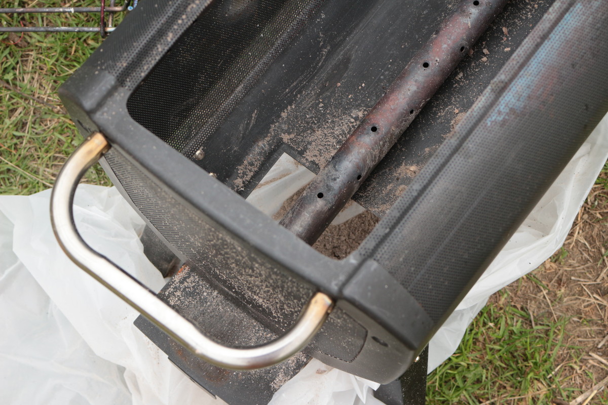 底にスライド式の扉が付いています。灰はこちらから取り出して処理できます。約9kgの本体をひっくり返す必要はありません。