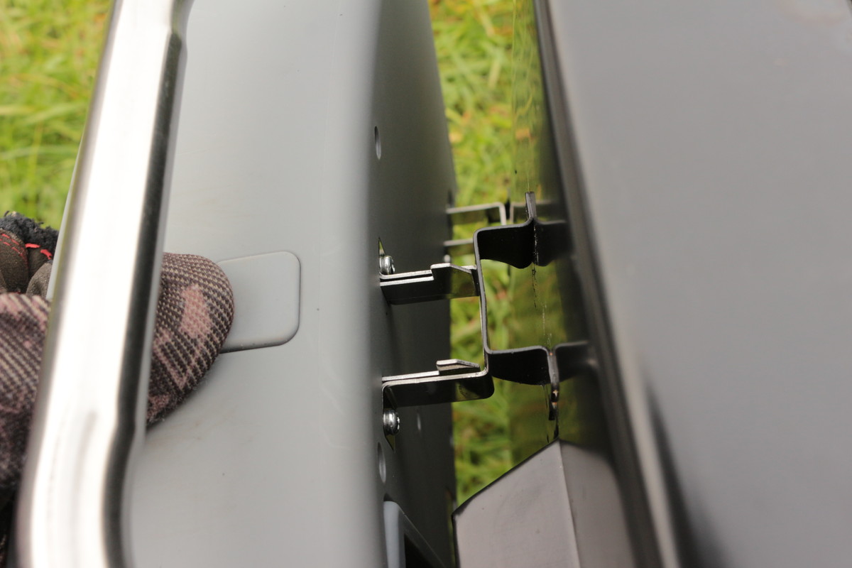 付属の網は片側に小さくワイヤーが出っ張っています。この部分を本体に載せて、スライドさせれば燃焼させた炭の上でも安全にセットできるんですね。また、網が横にずれにくいという役目も担っています。
