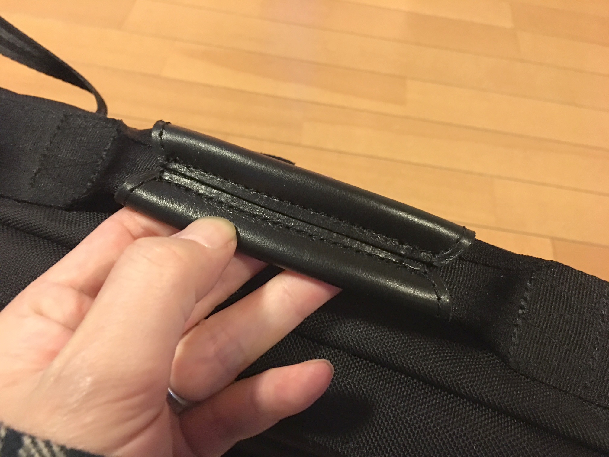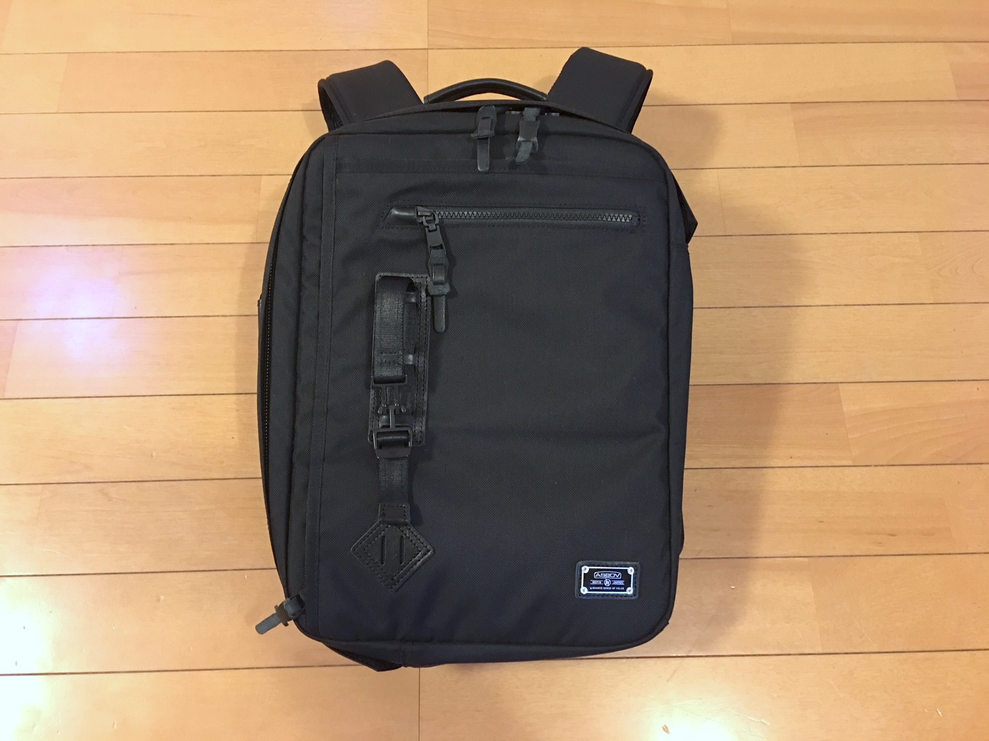 ボディの生地はアッソブがコーデュラ社に別注したオリジナルのバリスティックナイロンを使用しています。バリスティックナイロンならではの堅牢でザラザラした質感はそのままに、上品なツヤ感が加わっています。