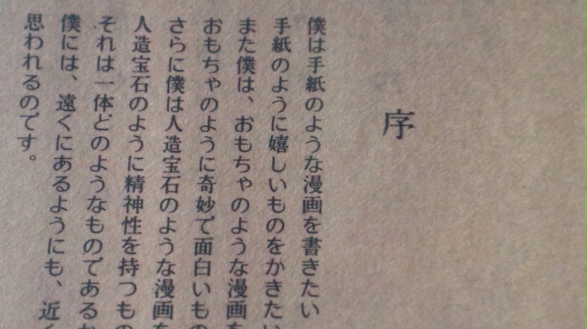 写真の本(マンガ)は、僕が高校1年の16歳(1980年)の時に通信販売で買ったものだ。当時、小さい出版社から小規模で発売されたもので、通常の書店には置いておらず、その出版社から出ていたマンガ雑誌の広告でこの本の存在を知った。そのマンガ雑誌は「ぱふ」と言って、同人誌に近いマニアックな月刊のマンガ雑誌だったが、僕の地元、浜松では通常の書店でも、このマンガ雑誌は購入できた。