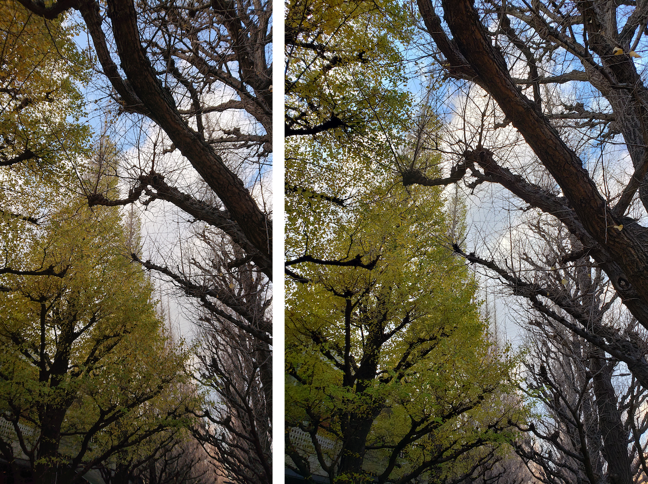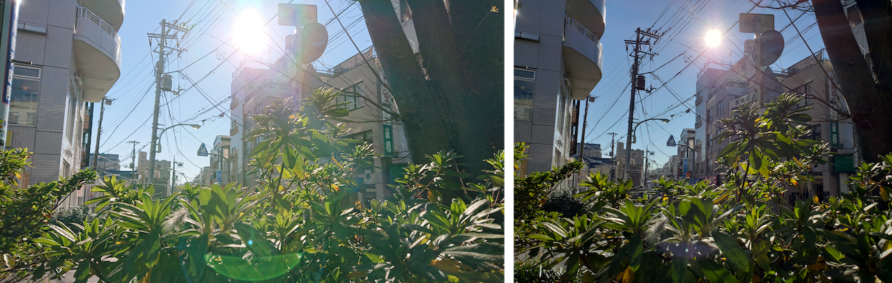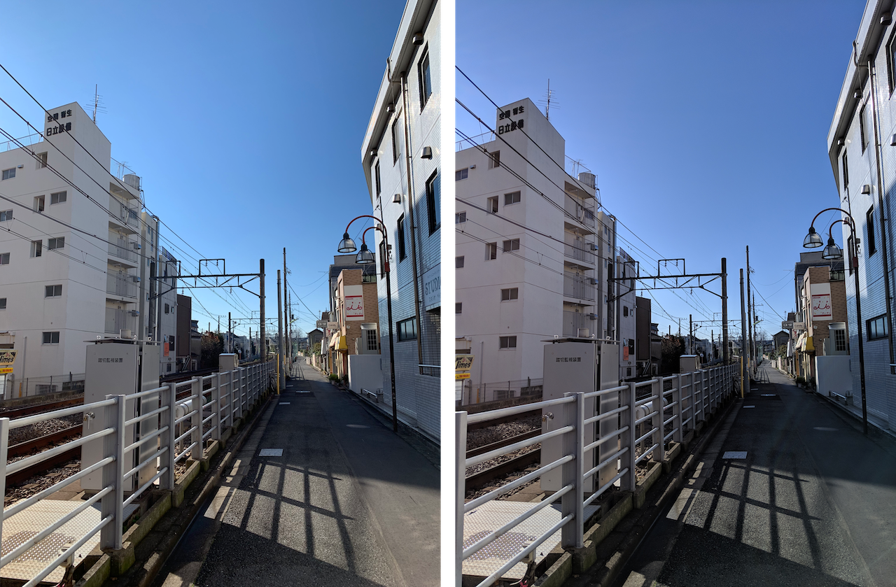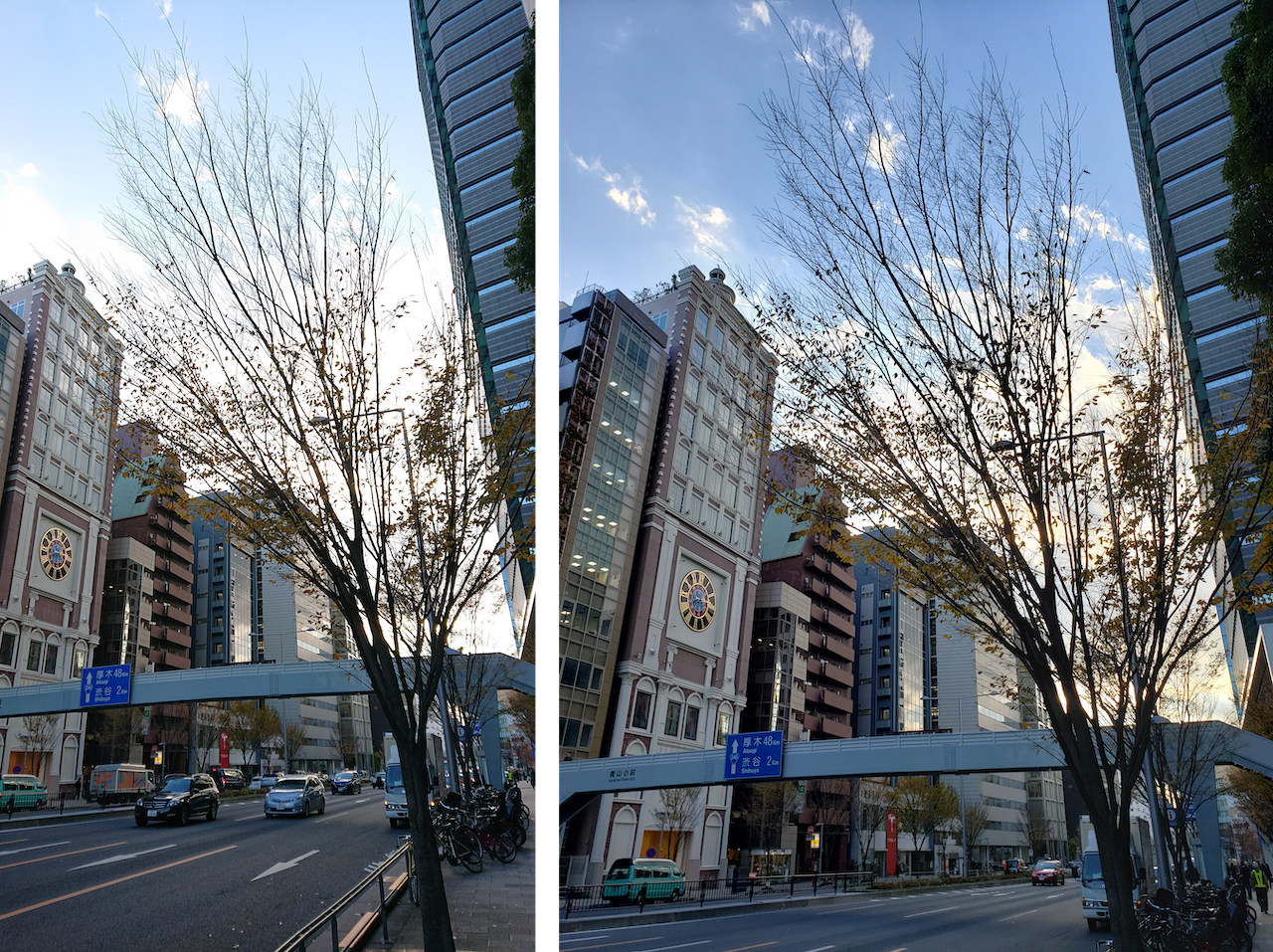 ▲iPhone XS(左)、Pixel 3(右 ※夜景モードは非使用)