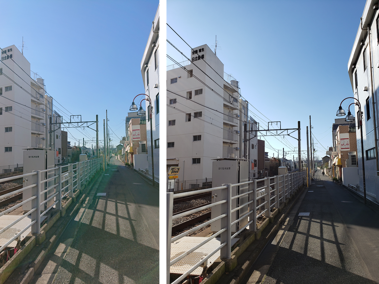 シンプルな構図で、淡々と4機種のカメラを比較してみました。スマホのカメラというと華やかな新機能にどうしても目がいきがちですが、たまにはこういう地味な部分をじっくり比べてみるのも、面白いものです。