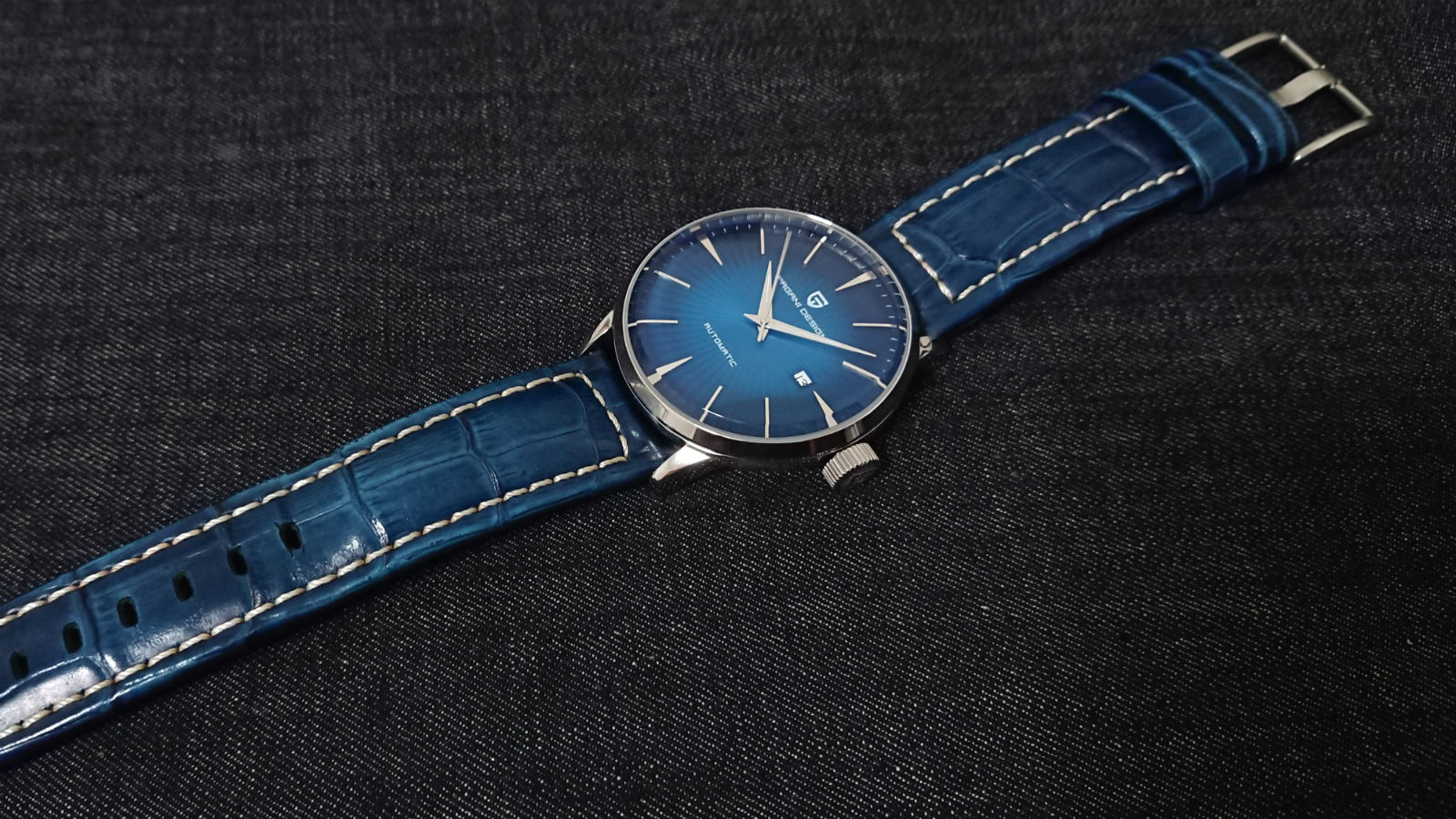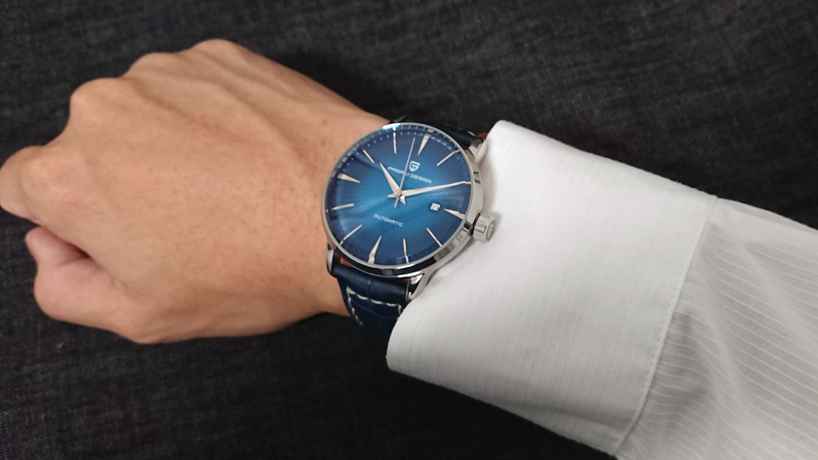 私好みの青いグラデーションがかった文字盤に惹かれ、購入を決めました。