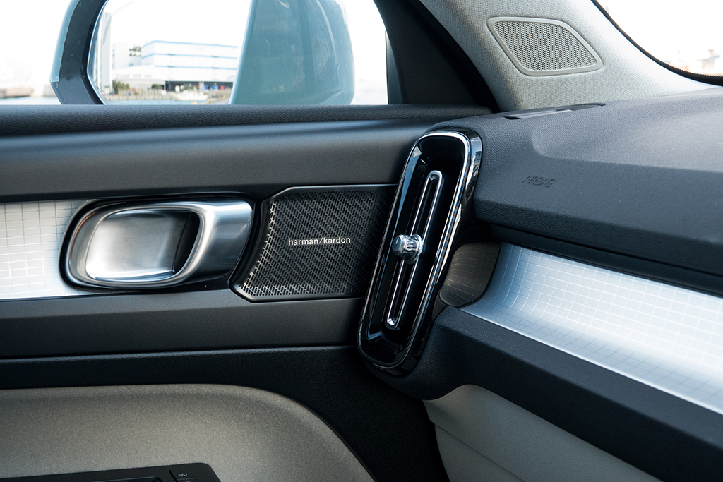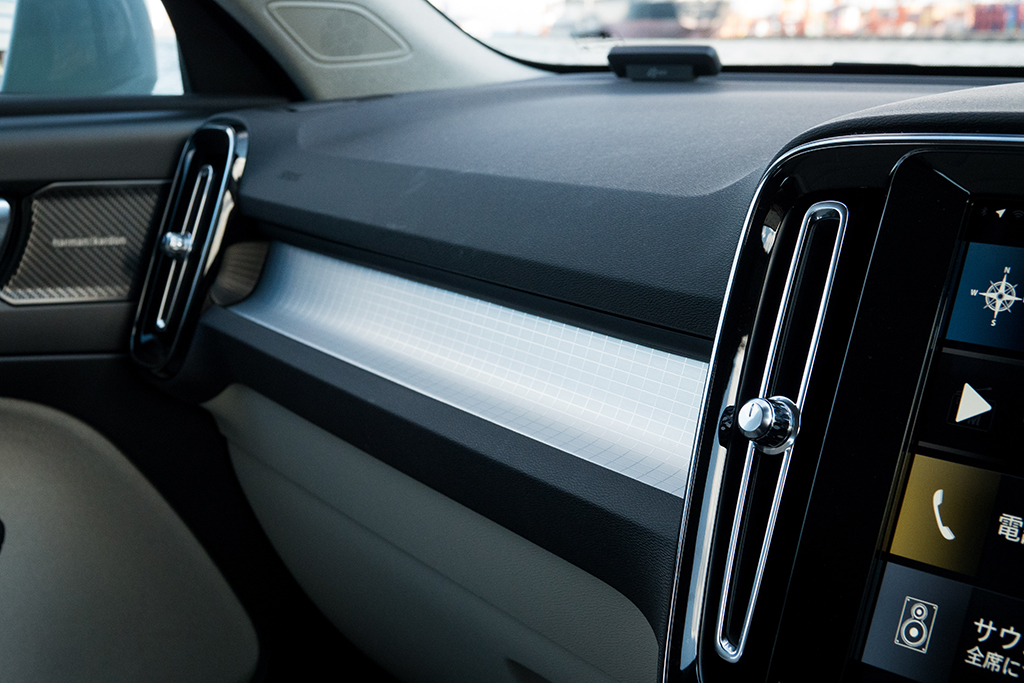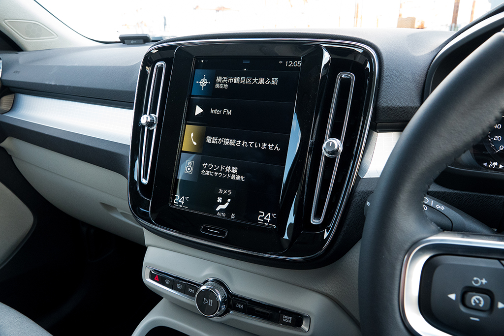 またXC40は、先進性の高さも魅力的だ。この項目においてまず目立つのは、インパネの中央に鎮座する、縦型12.3インチのタッチパネル式ディスプレイ。かつてのボルボ車は、運転席回りに多くの物理スイッチをレイアウトしていたが、XC40を始めとする最新世代のボルボ車は、スマホ感覚で扱えるタッチ式ディスプレイをインパネの中央に組み込み、ナビゲーションやオーディオ、空調、車体設定などに関する各種操作を、モニターで行えるようにしている。