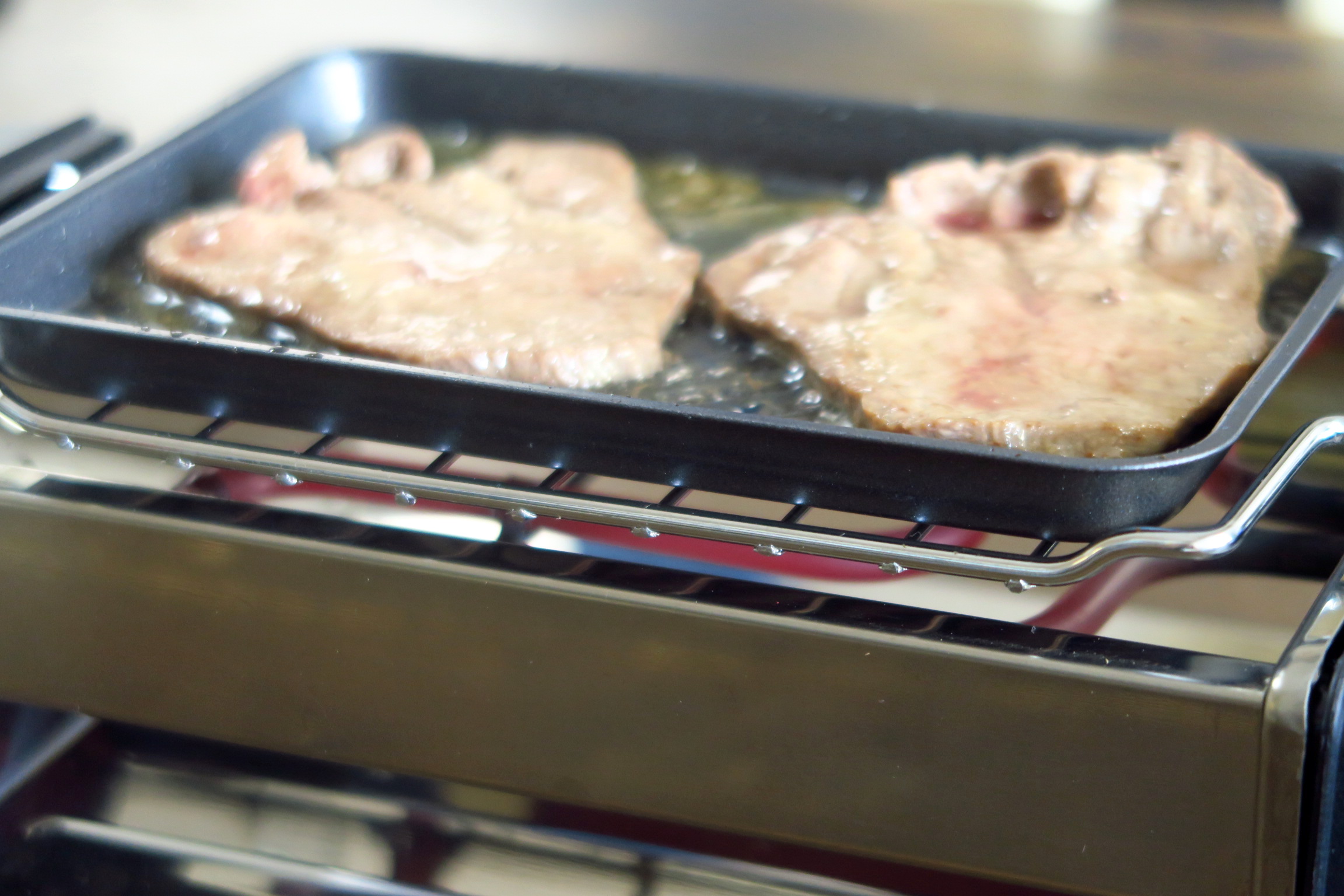▲熱源に直接脂が落ちるので心配だったが、とくに問題なく焼けた。下にプレートをセットして、脂の受け皿として使うといい