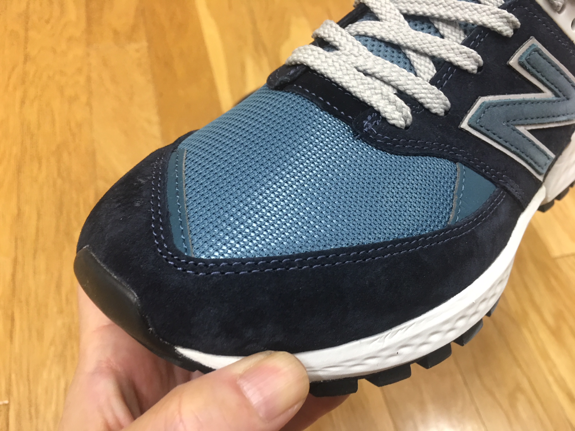 そして、ブルーを基調にした、いかにもニューバランスっぽい清潔感のあるフォルムがイイ! オフロードモデルならではの武骨なアウトソール&軽やかなミッドソールコンビっていう、上品なルックスと男気溢れるスペックの組み合わせにも惹かれちゃいます。