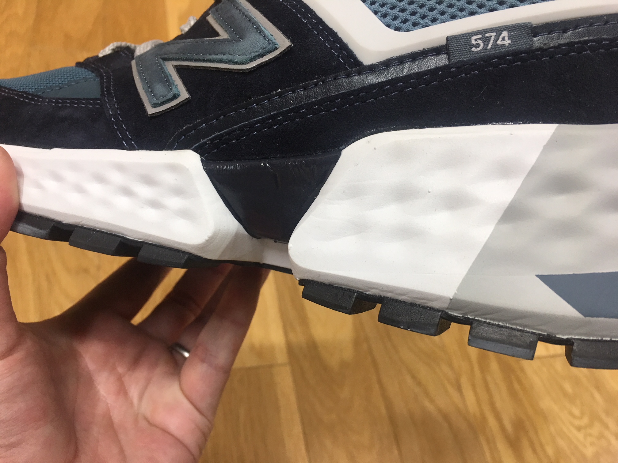 アウトソールは「574」本来のトレッドパターンを踏襲しつつ、より一層溝を深くメリハリを付ける事で、悪路でのグリップ力をアップしています。