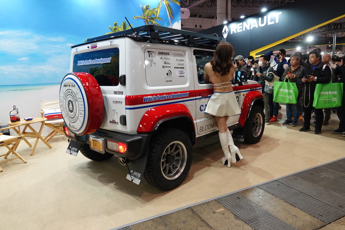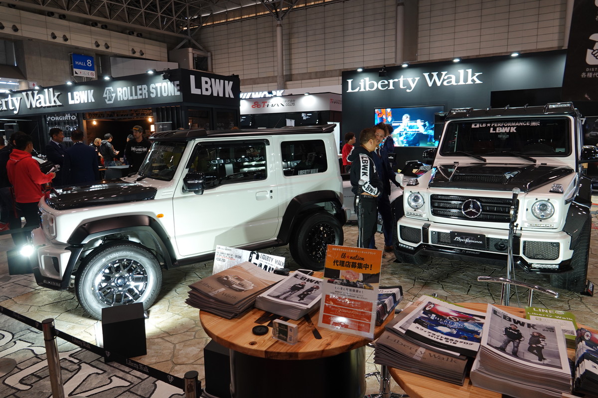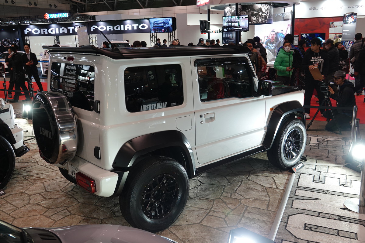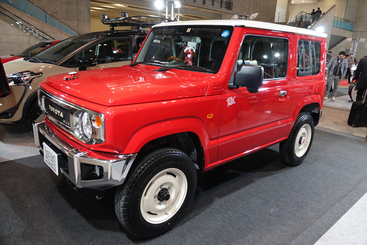 大阪にあるカスタムショップ「PRO-STAFF」は、自身のブランドであるJCW DESIGNからジムニーを出品。その名も「mini G63」。会場では、AMG G63のカスタムカーと一緒にジムニーを展示していました。