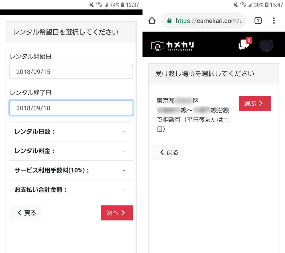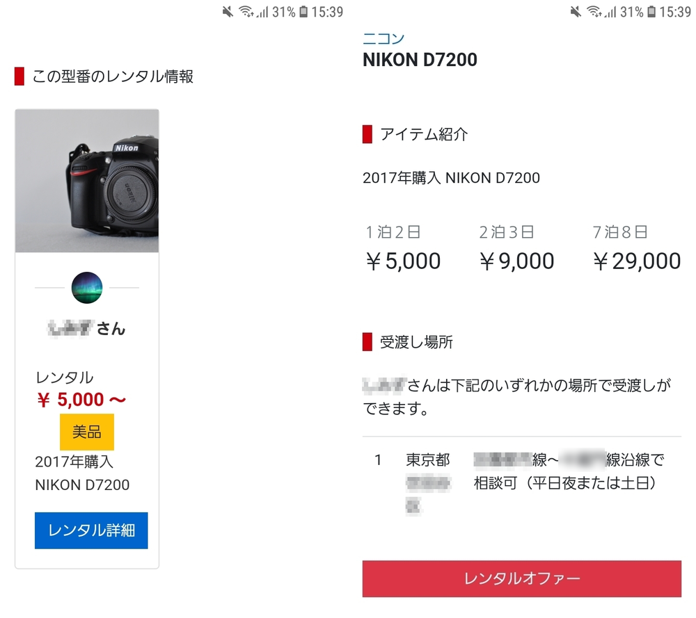 カメカリを利用してみて感じたのは、安く借りられる手頃さ。購入するより安いのはもちろん、レンタルショップの価格と比較しても低価格である場合がほとんどでした。料金はオーナーが設定するので、割安具合は機材によってバラつきがありますが、カメカリに出品されている機材は全体的に割安な水準にあるように思います。