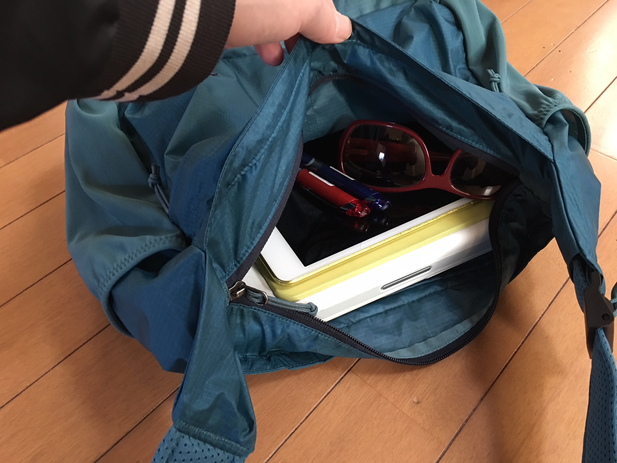サイズが33x25x13cmとそこそこの大きさがあるので、タブレットや小物はもちろん、14インチのノートPCだって入っちゃいます。