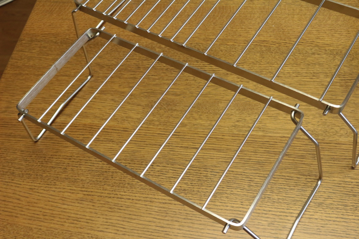シェルフは外側・内側、どちら側にかたむけてもOK。底が広いダッチオーブンやスキレットなんかは内側に向ければそのまま載せられますし、外側にして手持ちの五徳を載せれば小さな鍋を載せられるんです。