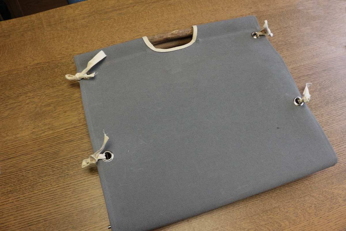 バッグ形状の収納ケース付きですが、TOKOBIを持ち運べて、下に広げれば熱のダメージを軽減できる特製ケース(上写真 名称未定)も販売予定だそう。ハンドル部分に自分で用意した木の枝を差し込みます。こうすれば持ち運びやすいですし、両側のひもをはずして薪運びにも使えます。写真は試作品、完成が楽しみですね。