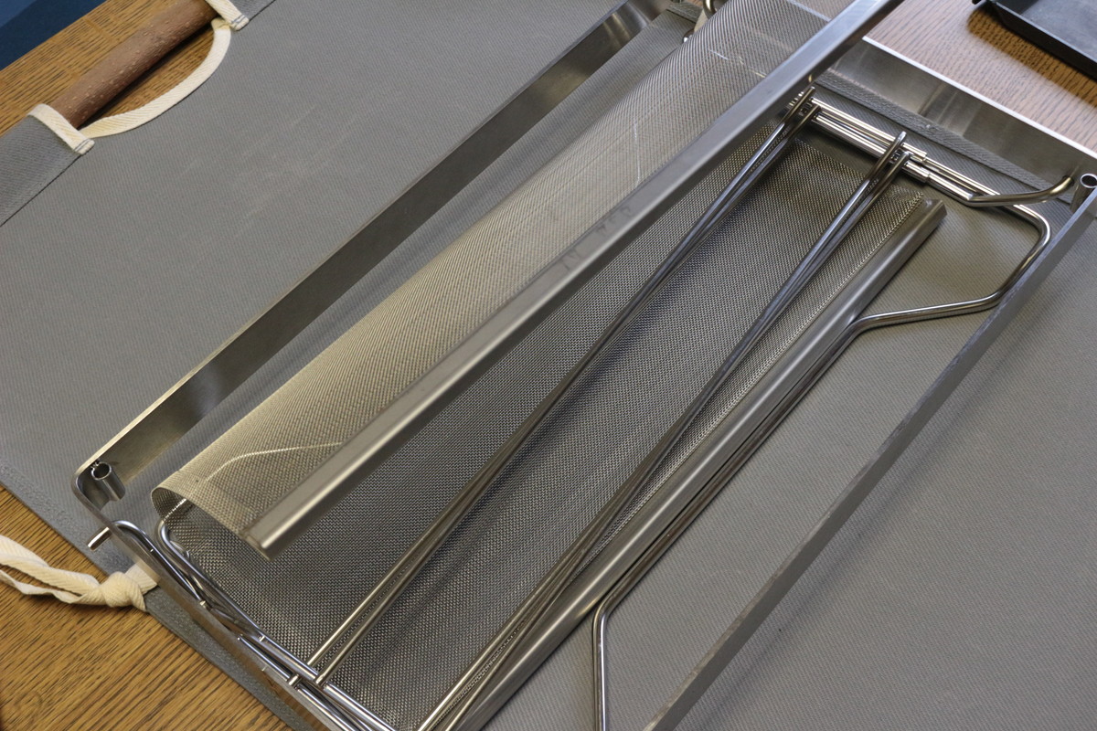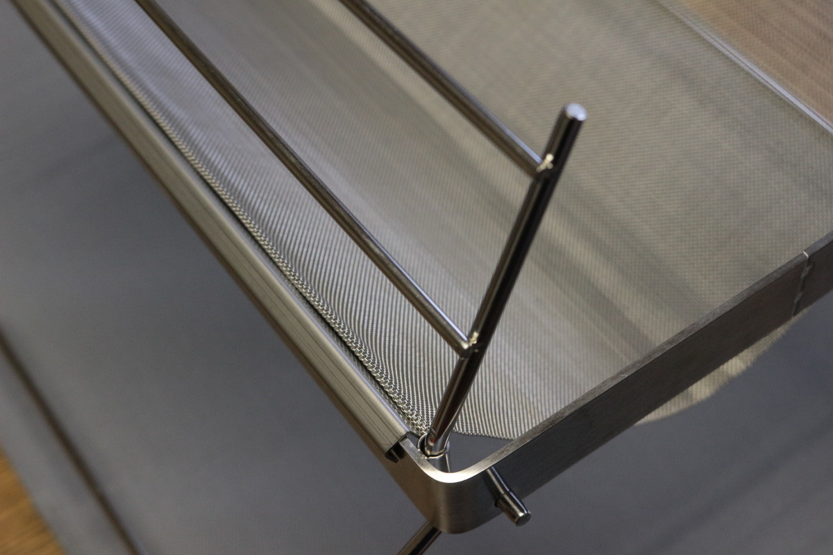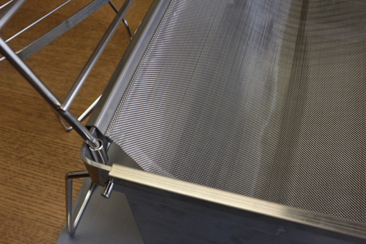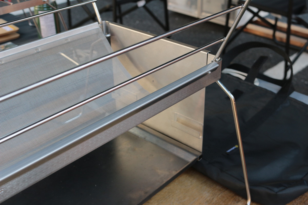 本体の脚を広げたら、メッシュ火床をフレームに引っかけます。