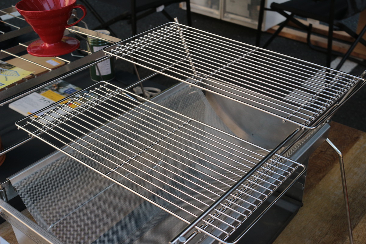 写真は風よけプレート(名称未定)とマルチに使える鉄板(名称未定)も装着しています。春には販売するそうなのでお楽しみに!