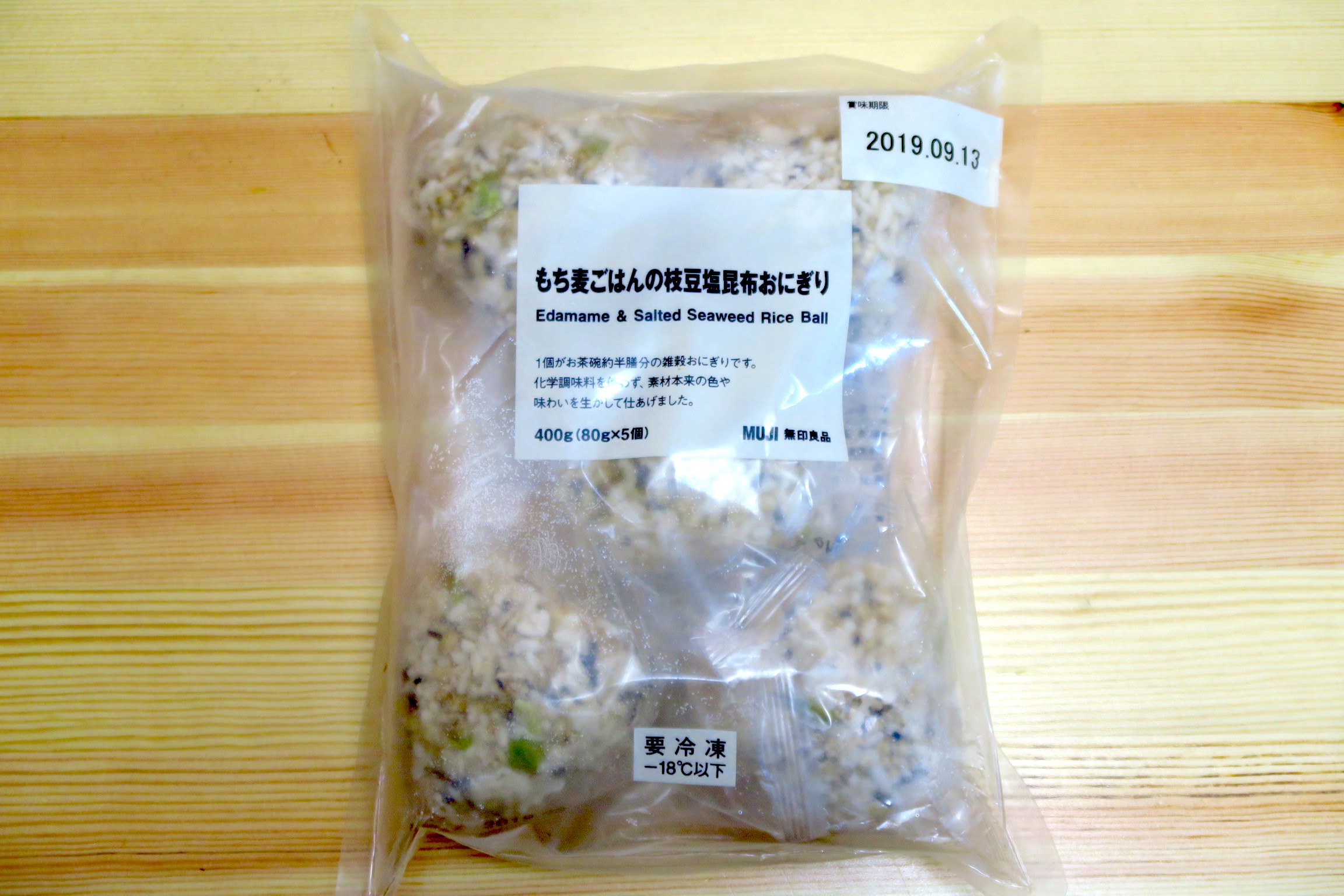 ▲「もち麦ごはんの枝豆塩昆布おにぎり」は80g×5個入りが490円(税込)