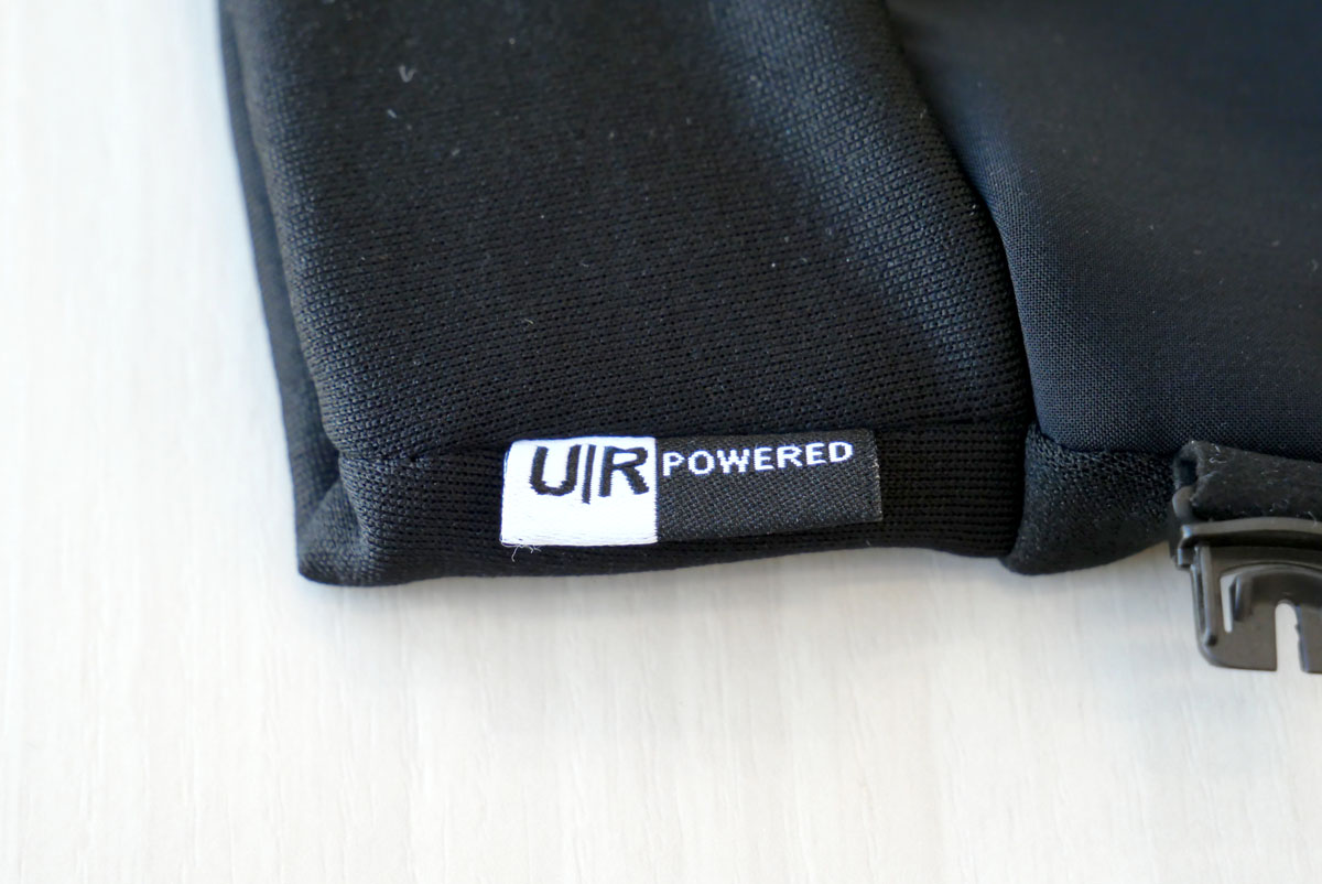 最近売られている手袋は、ほとんどがタッチパネル対応になっています。そしてこの手袋もそう。手のひら側は全面対応です。“U|I POWERED”という伝導性のポリマーコーティングが施されていて、スマホの起動とアプリの呼び出し、スクロールぐらいなら余裕でできちゃいます。