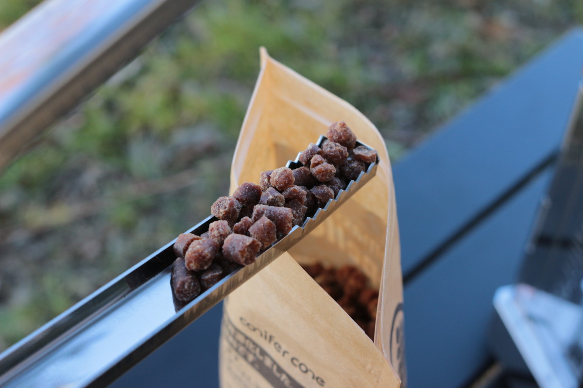 ちなみに、Pペレットは一般的な木質ペレットよりも着火しやすく、100gで20分ほど燃焼します。ただ、200gで600円なのでPペレットとリーズナブルな木質ペレットを1:4〜5の割合で使用するという方法があるそうですよ。