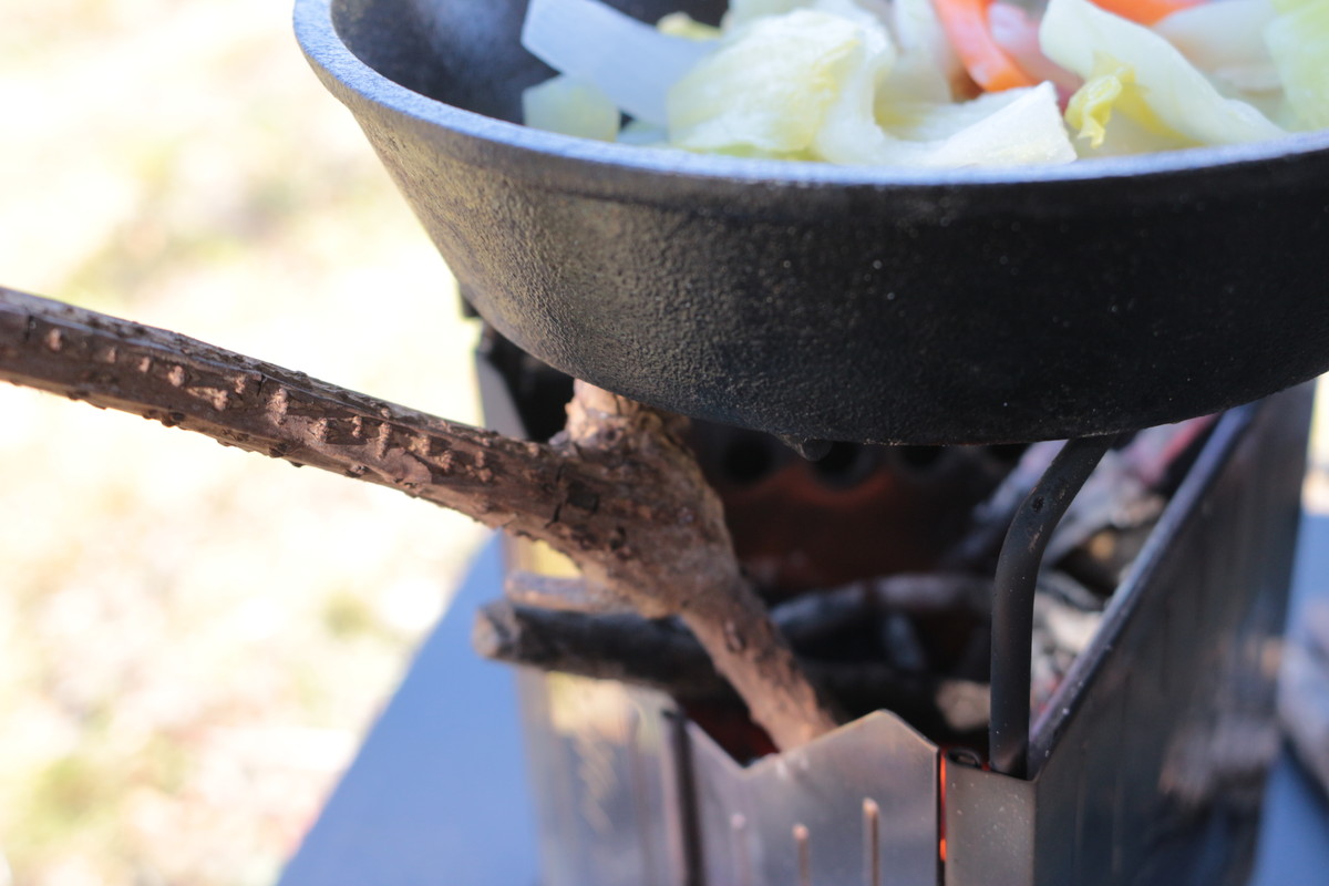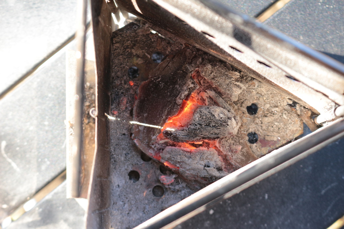 3面のうち1面は少し低くなっています。鍋を載せたまま、燃料を追加しやすいデザインです。これも改良型ならではの機能です。