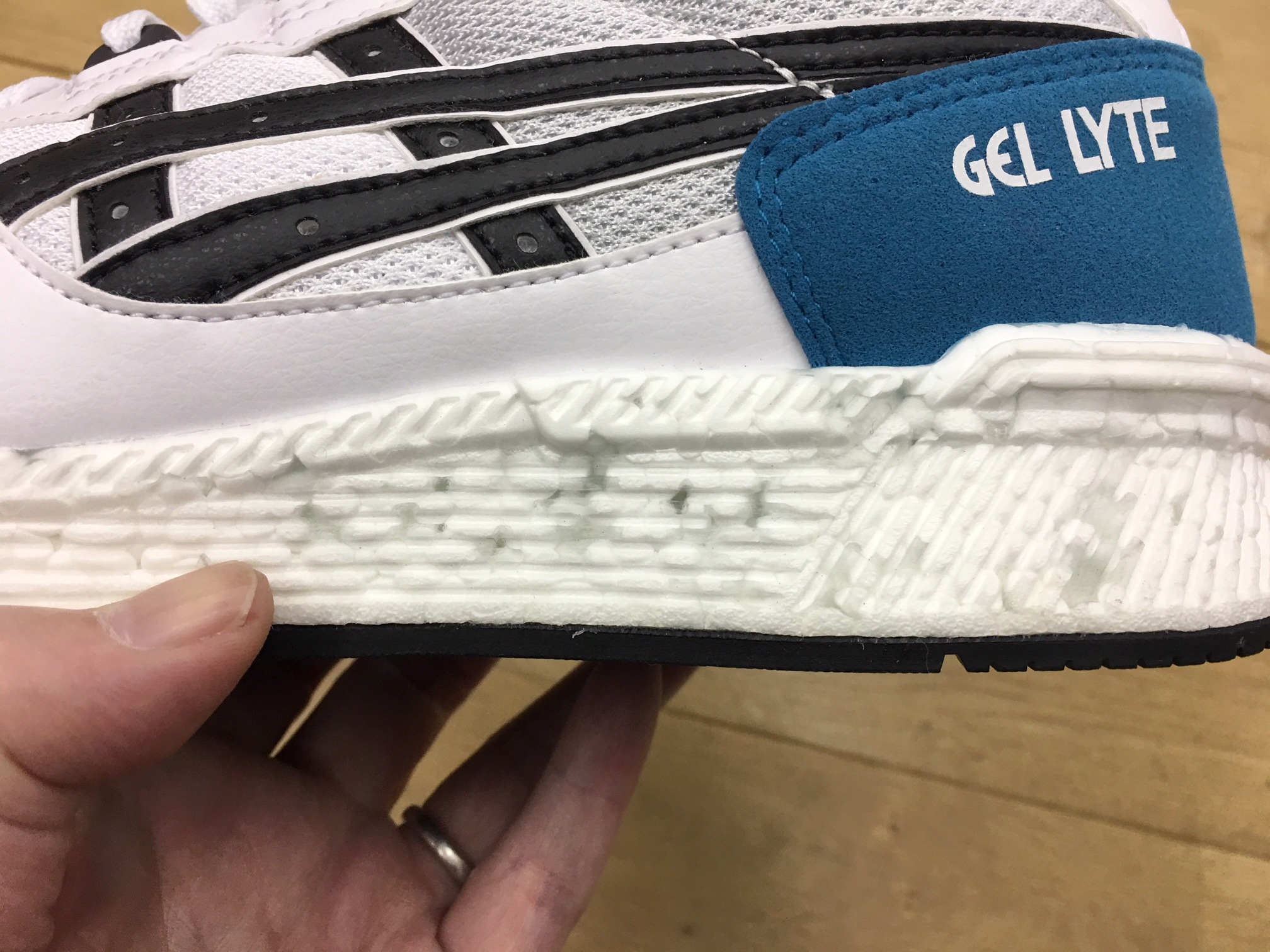 ミッドソールに要注目! ホワイトのEVAをメインにグレーのHyperGELが均等に散りばめられ、反発性とクッション性を大幅に向上させています。