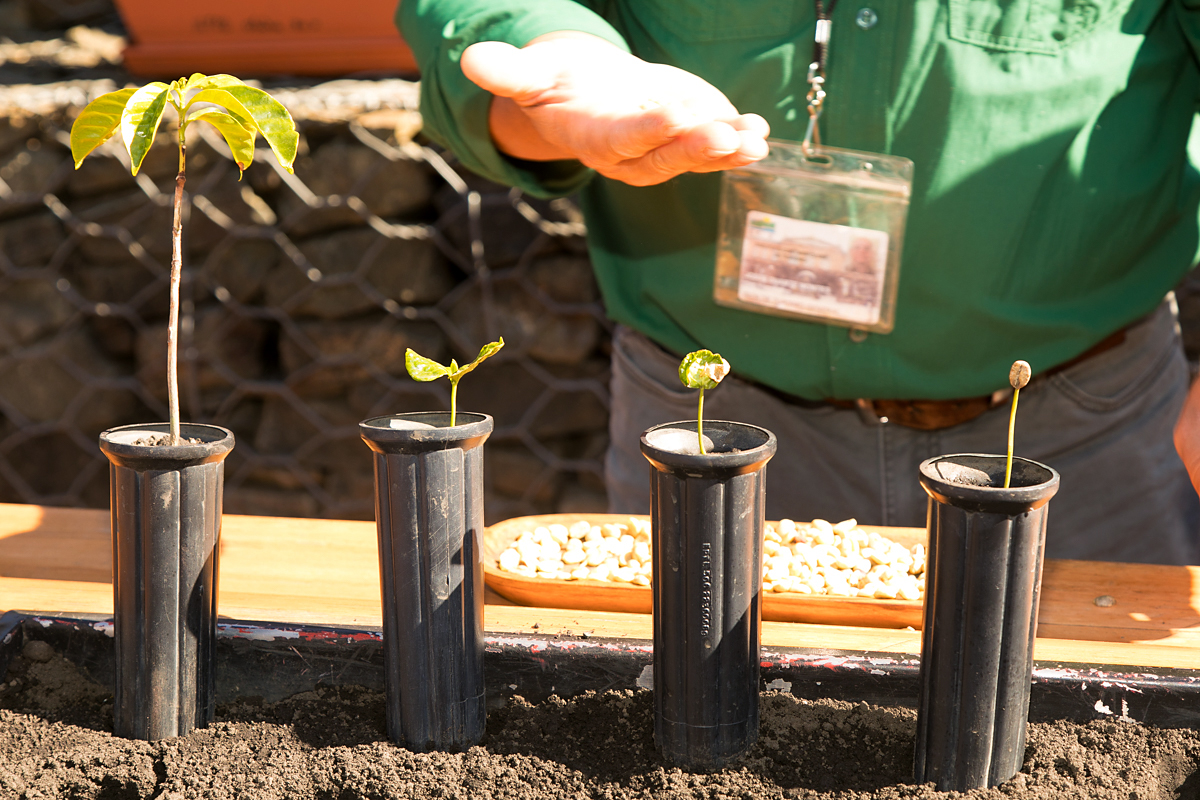 種から焙煎前の生豆状態までというコーヒー豆が作られる一連の過程を、実際に体験しながら理解できるようになっているビジターセンター。そしてその後ろには、広大なコーヒー農園が広がっています。
