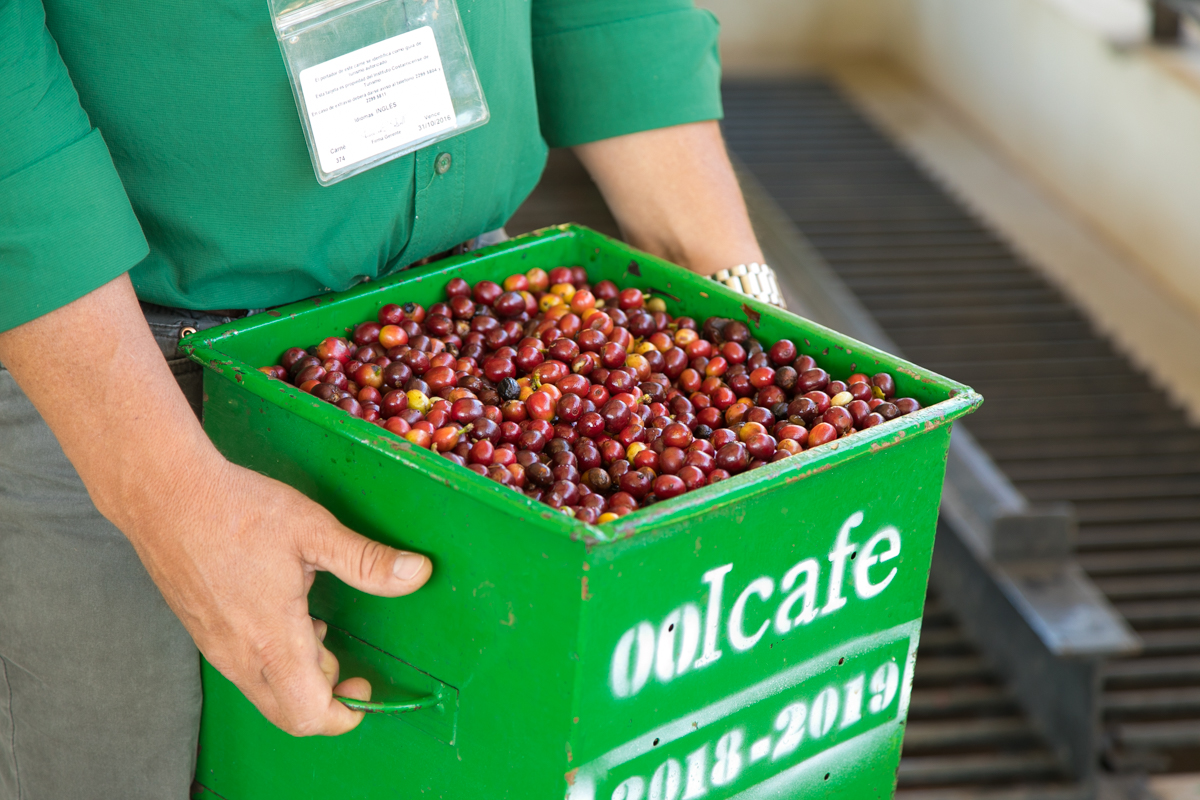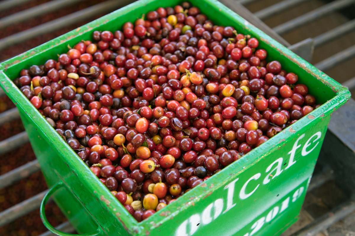 ▲採ったコーヒーチェリーを隣の加工場へ