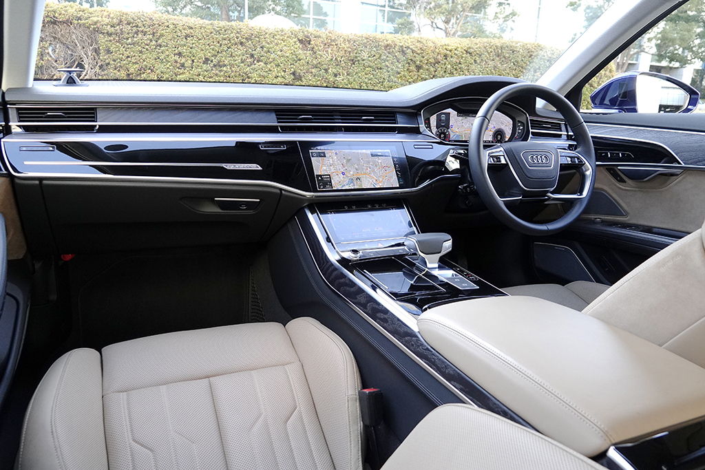 このクラスの王者であるSクラスは、従来からの圧倒的な豪華装備と世界最高峰の先進安全装備に加え、近年は走りの味つけに爽快感を持たせている。また、最大の対抗馬である7シリーズは、サーキットでも通用する優れた走行性能と、圧倒的なまでの走る歓びに、一貫してこだわり続ける。それらライバルに対し、新型A8は、世界をリードする自動運転技術で勝負を挑んできたのである。