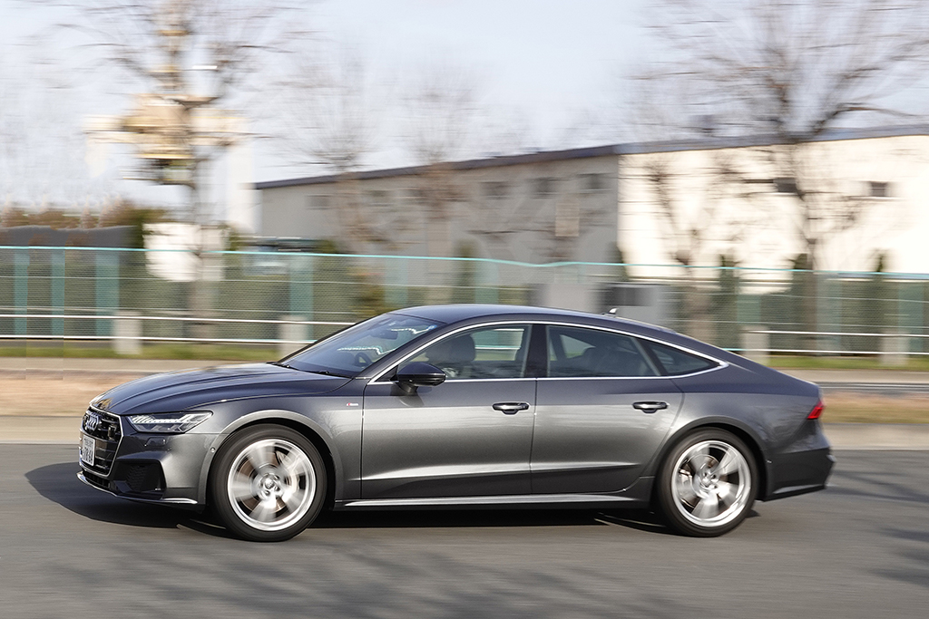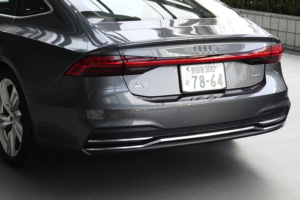 クーペのようなロー&ワイドのフォルムや、ルーフからリアピラーへかけての、流れるようなラインは、アウディ自ら“4ドアクーペ”と呼ぶのが素直にうなずける、カッコよさと美しさだ。「どうせ乗るのであれば、美しいクルマの方が断然いいに決まっている」と考える人は多いだろうが、このA7スポーツバックは、そんな人たちをひと目ぼれさせる確率が高い。