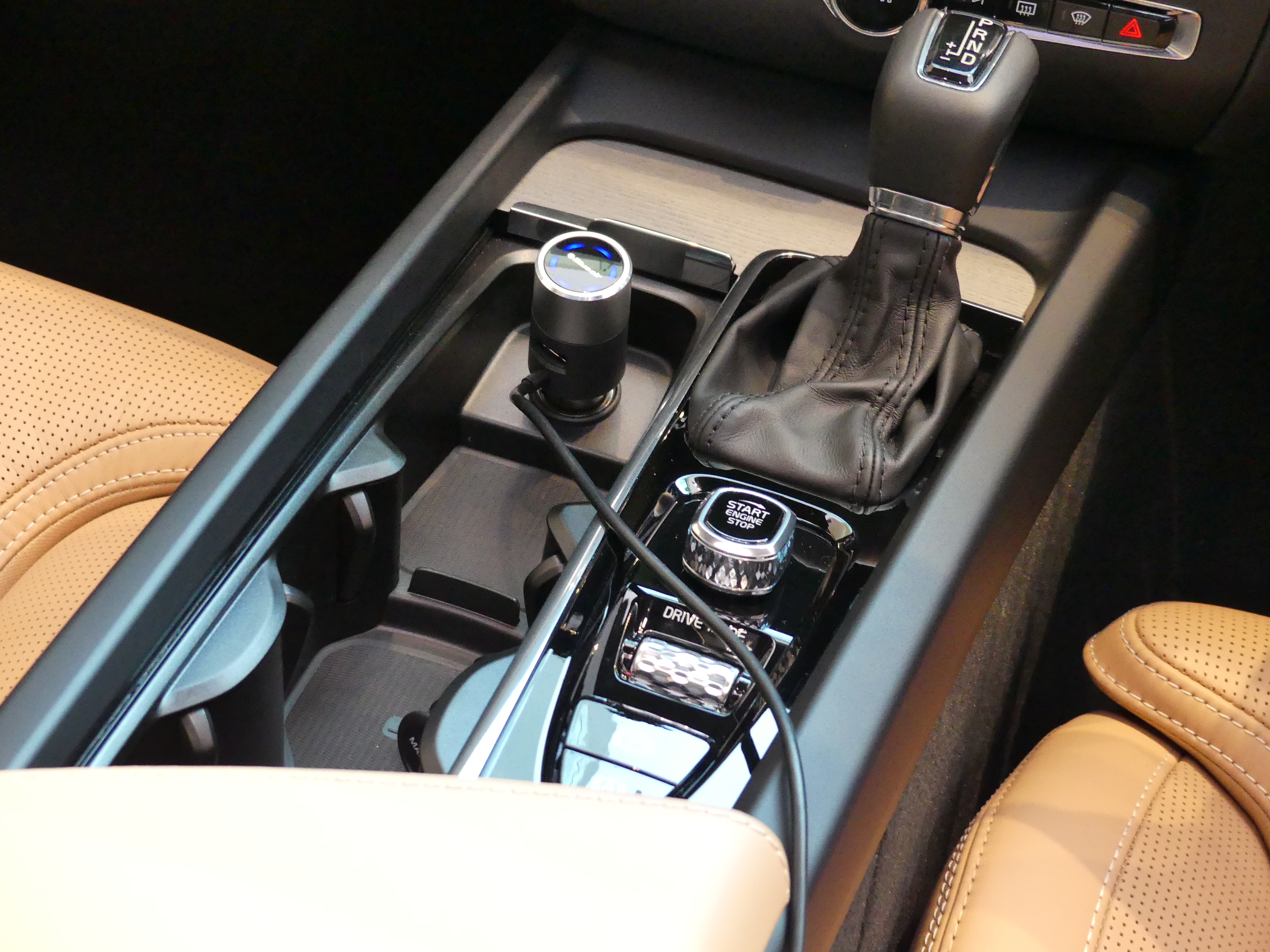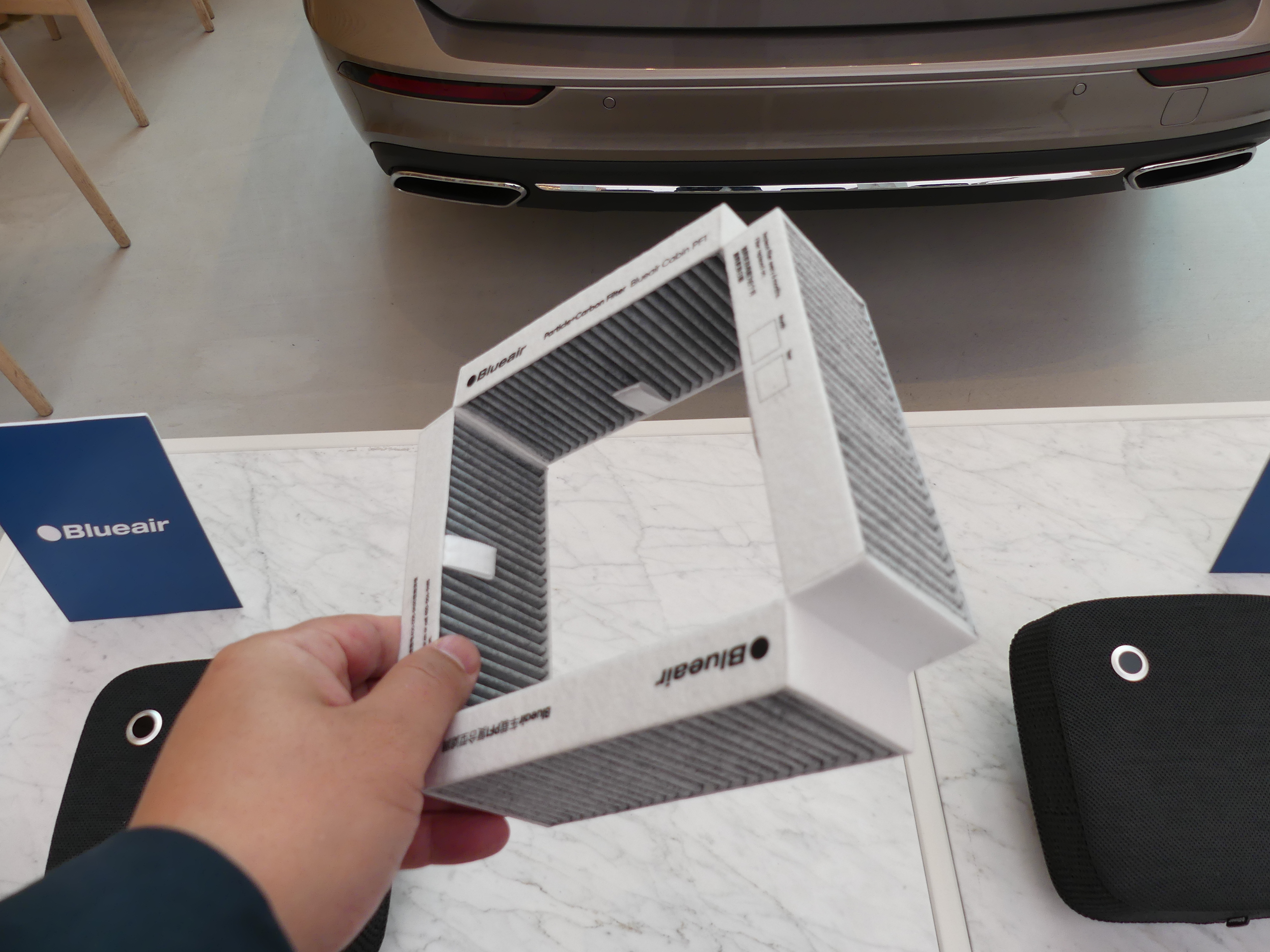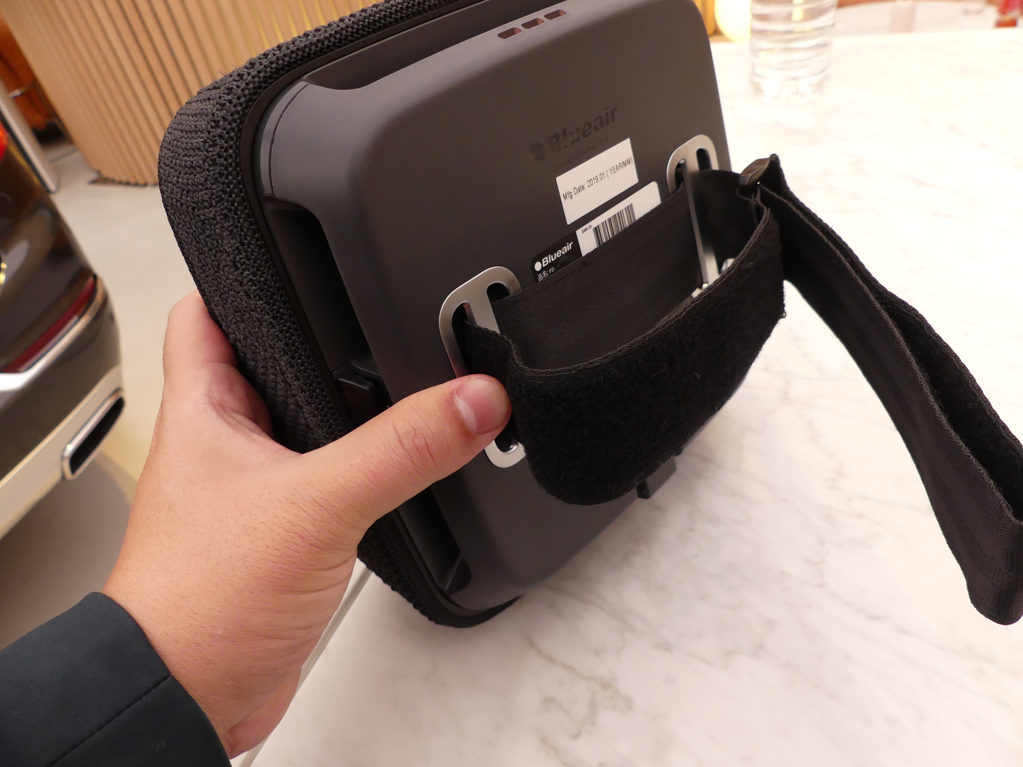 いや、イカンイカン、空気清浄機の取材に来たんだった。というわけで話をもとに戻すと、今回、スウェーデンの空気清浄機メーカー・ブルーエアが車載用空気清浄機を発表するとのこと。さっそく製品を見てみると、なるほど!こういう形なのかと。