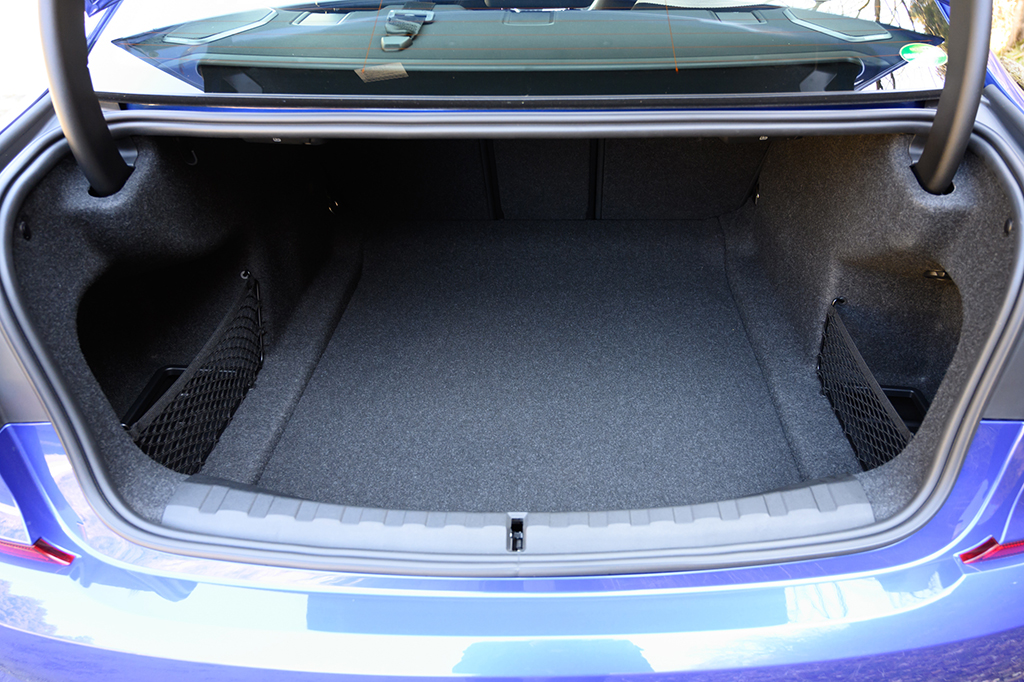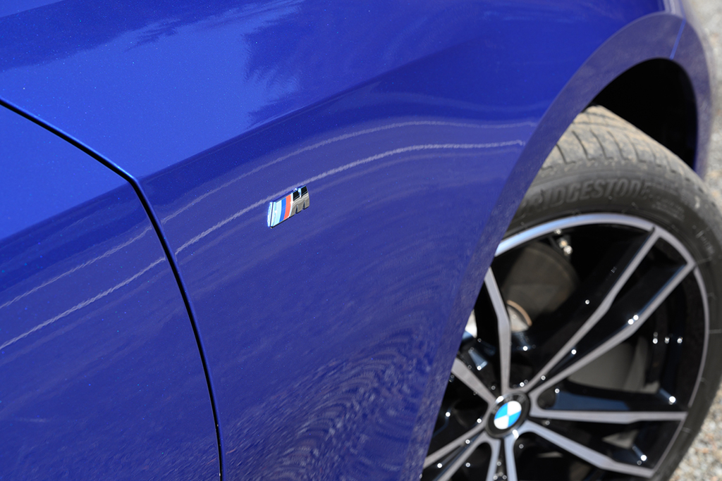 とはいえ、そのエクステリアデザインは、なかなかの二枚目。フロントバンパーからフロントフェンダーへとつながるラインは美しい曲線を描いていますし、張り出したリアフェンダーもスポーツセダンらしい力強さを感じさせます。ディテールにおいても、BMWの象徴というべきフロントの“キドニーグリル”がワンピースタイプとなり、ヘッドライド下端に切り欠きを入れることで、よりアグレッシブな印象に仕上がっています。