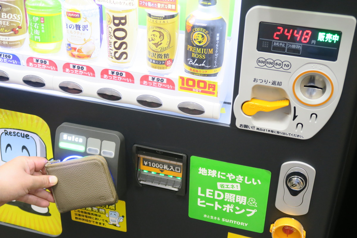 かなり増えたSuica/PASMO対応の自動販売機。喉が乾いてもカードで解決できるので安心です。