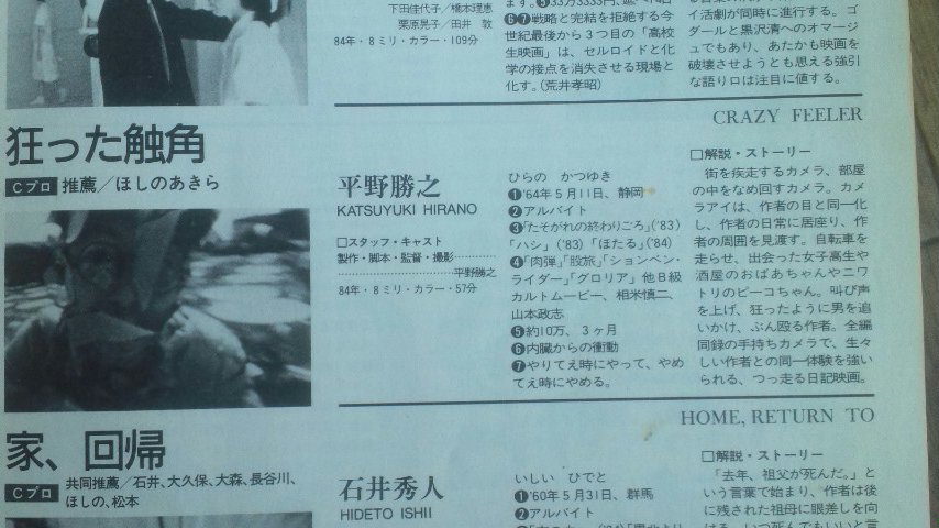 この『狂った触角』という映画は、その後、1985年のぴあフィルムフェスティバル(PFF)に入選し、自分にとって映画では初めて広い一般に知られる事となった。
