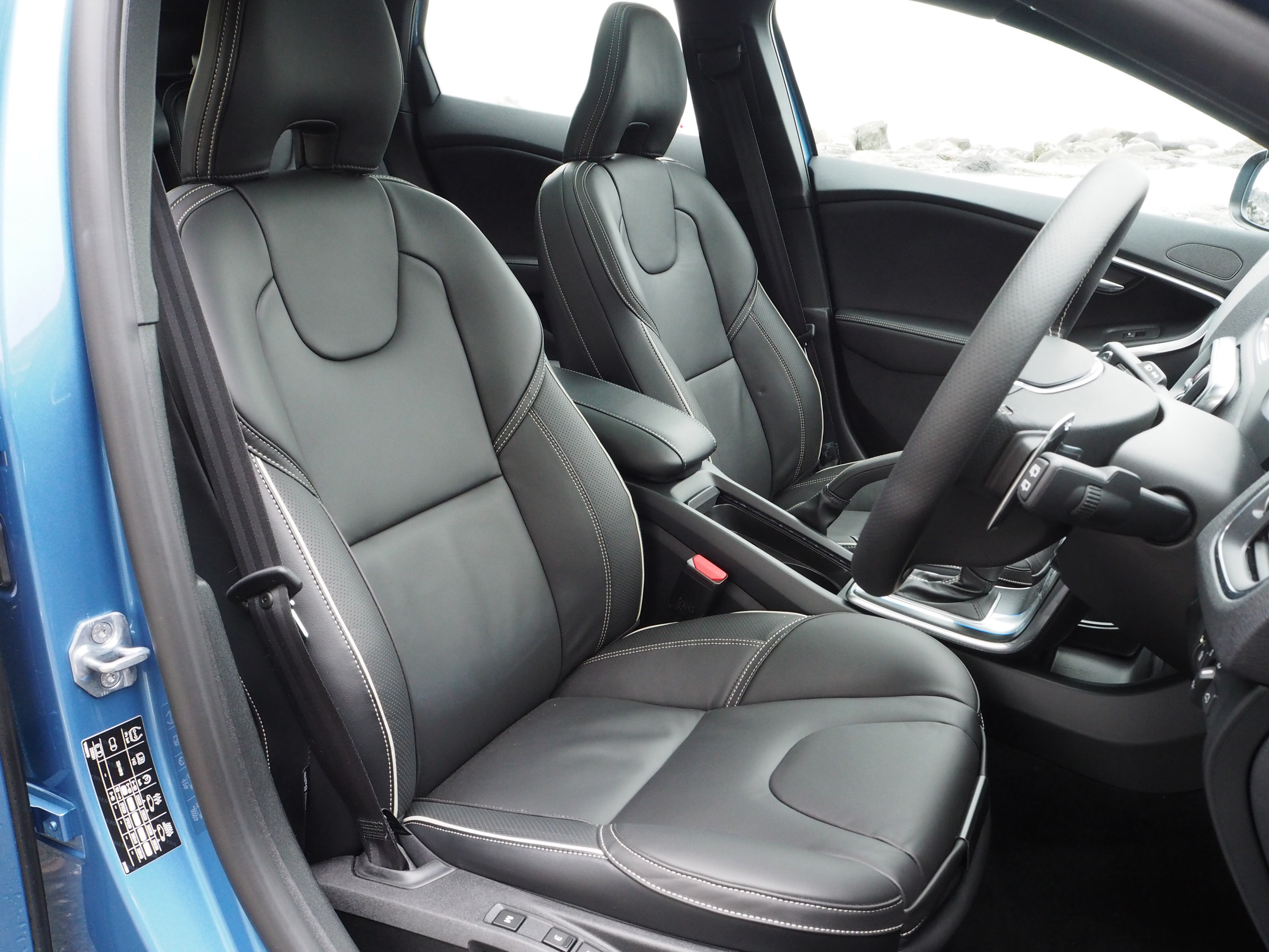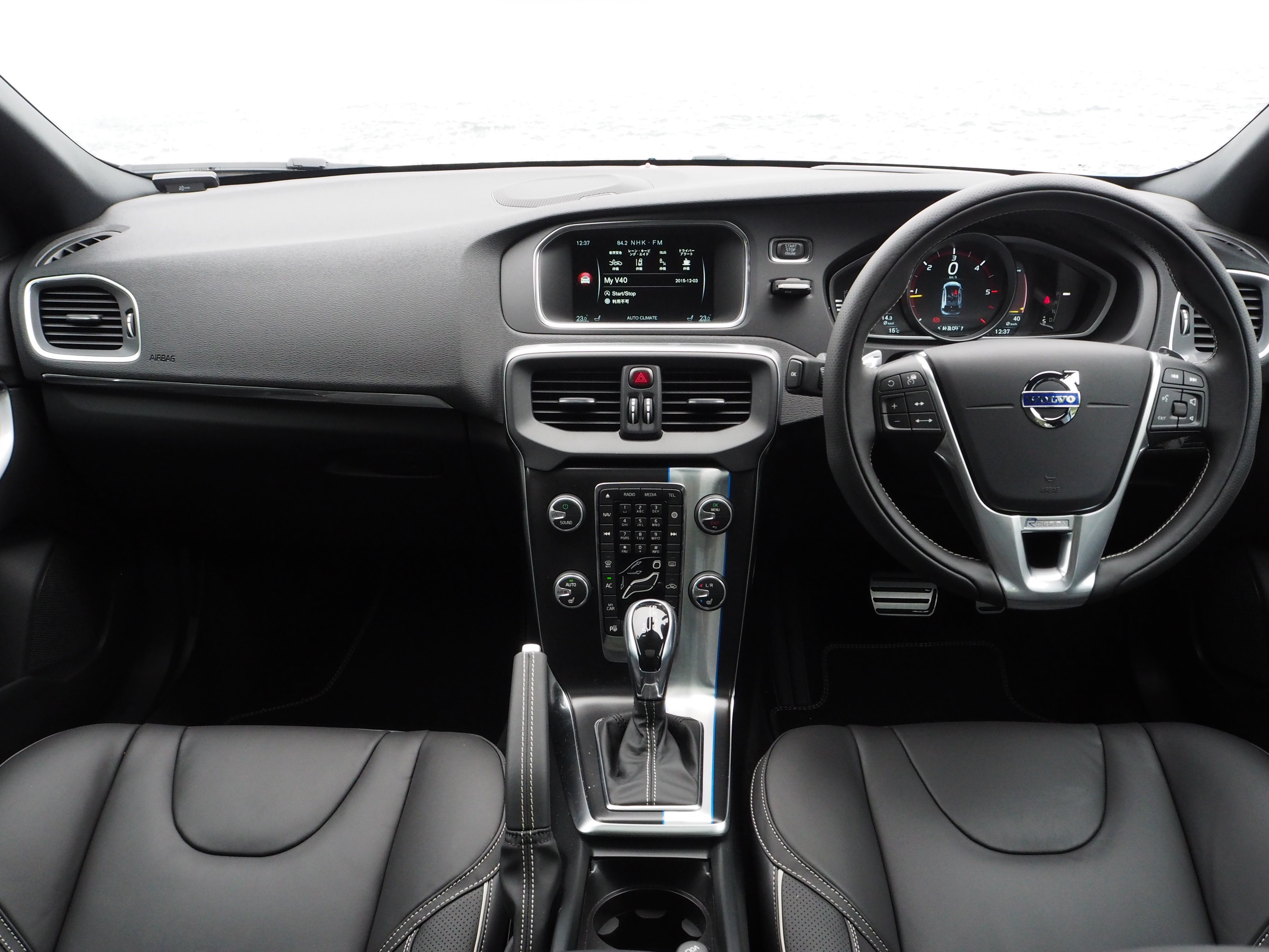 そういったハイパフォーマンスにふさわしく、さりげなくフロントバンパーのデザインが専用になっていたり、エキゾーストのエンドパイプが90mm径に拡大されていたり、さらには内装も、専用のレザーシートがあしらわれていたり、フィニッシュに専用パネルが使われていたり…。小型ビジネスジェットを手に入れるのは非現実的だとしても、これならば! と思わせてくれる上質な佇まいも、V40 D4 Rデザインの魅力として巧みにまとめられています。