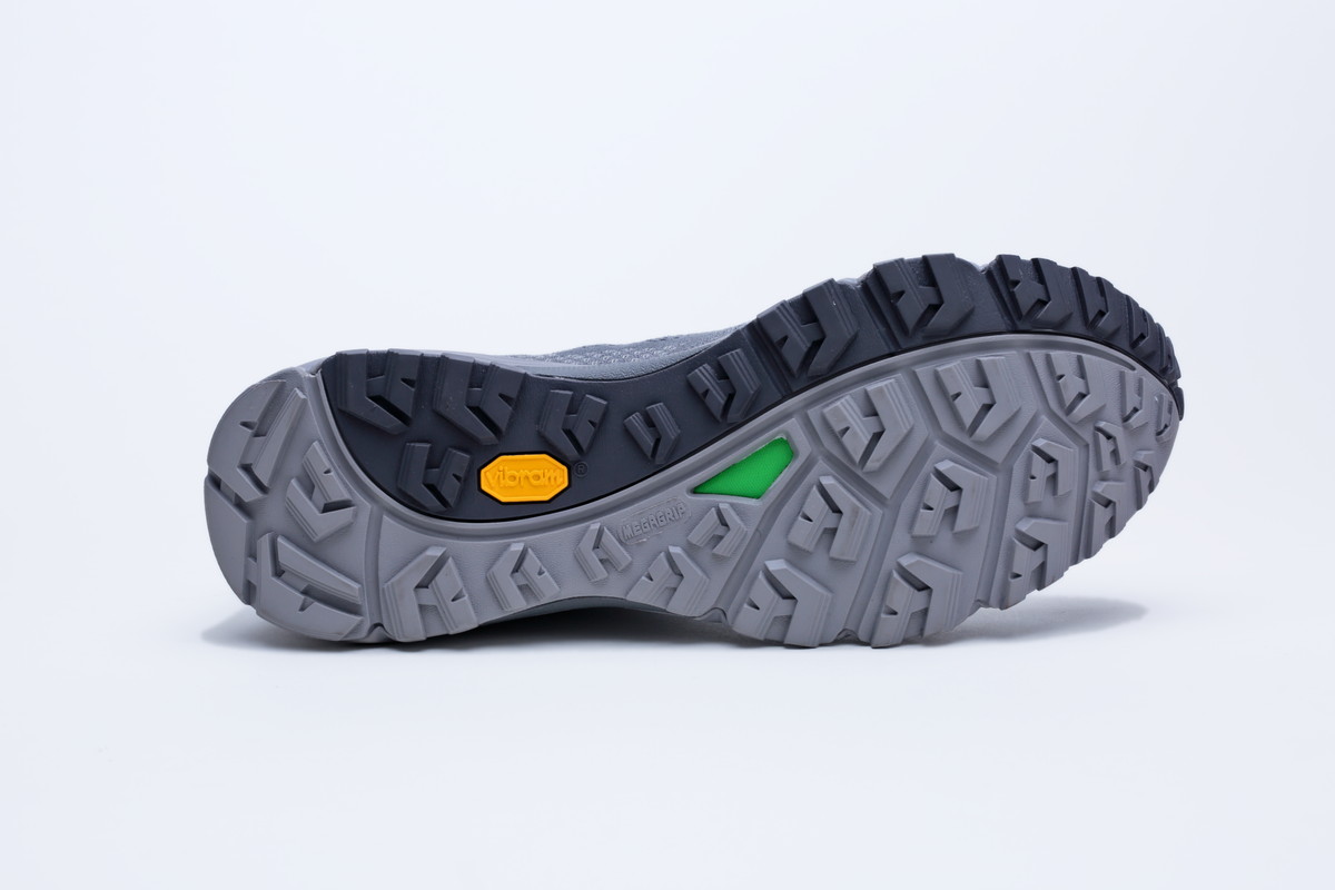 アウトソールには、ビブラム社の「メガグリップアウトソール」を採用。濡れた路面でも高いグリップ性能を備えているので、雨の日にタイルやマンホールの上で転ぶ心配も少なくなります。