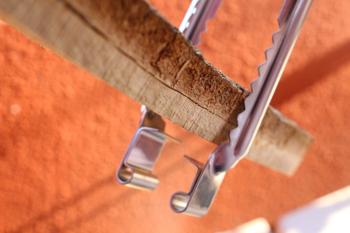 独特のデザインは薪や炭、そしてダッチオーブンまでもつかみやすく、気持ちよく利用できます。それに、バーベキューをしていると、炭用と食材用を分けていても“うっかり”炭用で食材をつかむことがあるんですが、このデザインなら間違えようがありません。