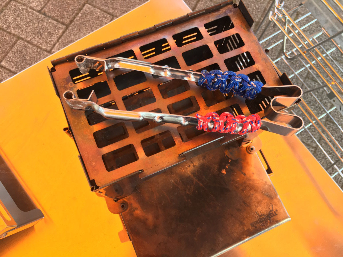 ちなみに、写真の「キングトングS」はテンマクデザインの展示品で、ハンドルにパラコードが編み込まれていました。人気の「キングトング」ですから、キャンプ仲間との“かぶり”も当然あるわけです。このカスタム、いいですね!