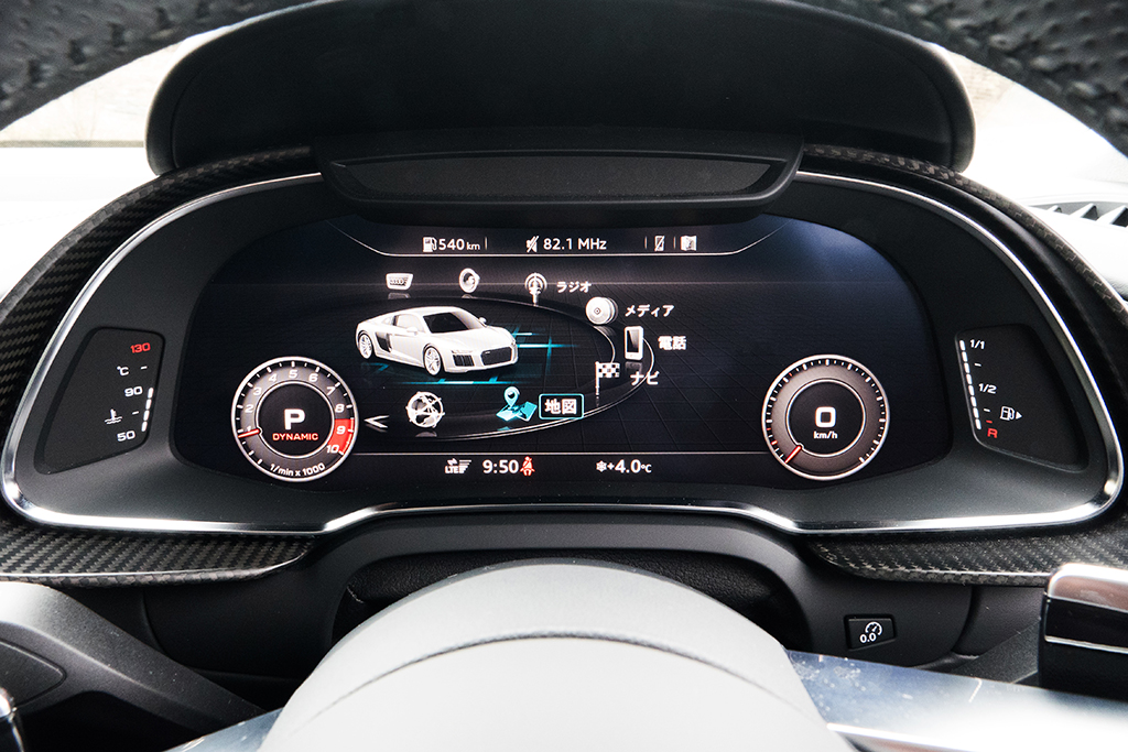 見た目はとがっているけれど必要以上にデリケートな部分はなく、乗っても驚くほど疲れない。そんな毎日付き合える、地に足の着いたスーパーカーこそがR8であり、クワトロを始めとする先進技術を武器にモノづくりを行ってきたアウディの思想を、このクルマからは濃密に感じられる。