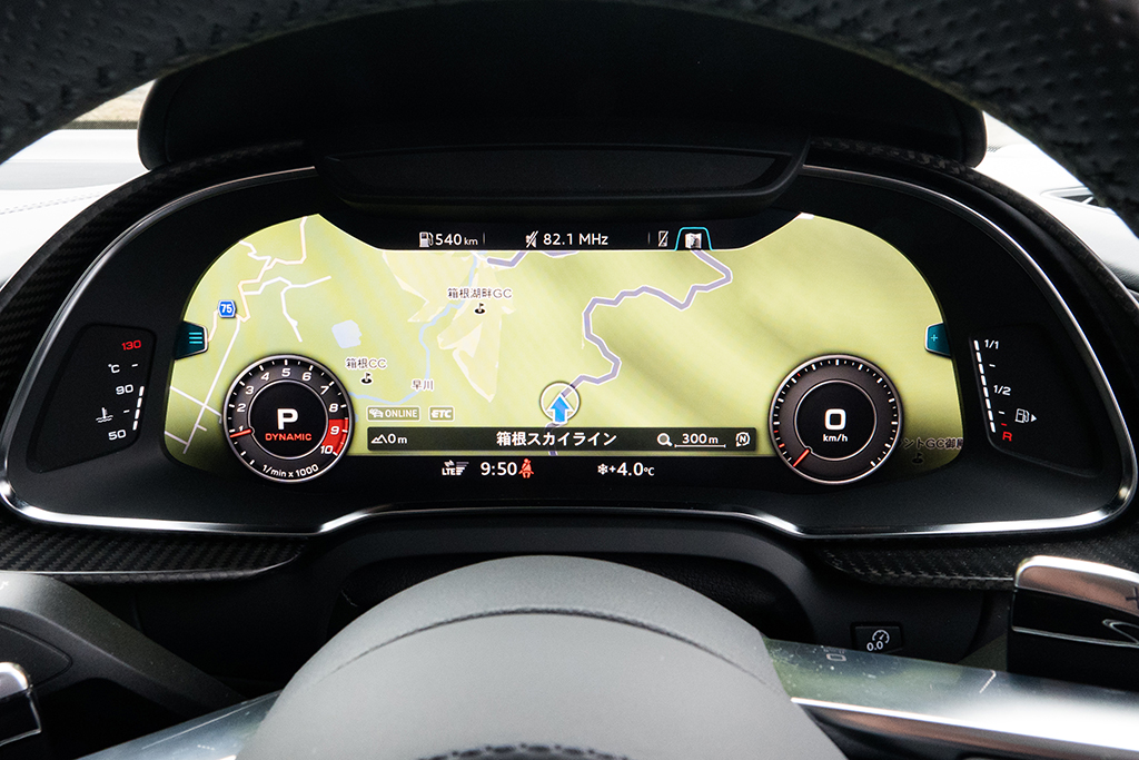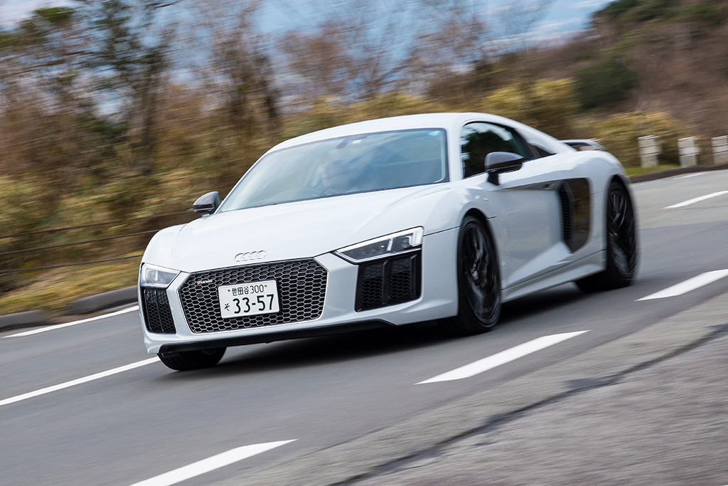 先代のR8は、ランボルギーニとの差別化を図るためか、高速域での安定性を重視し過ぎた感があり、俊敏性に欠ける印象があった。新型はその辺りのバランスが最適化されており、優れた回頭性を武器に、タイトなコーナーが続く箱根の峠道を、まるで水を得た魚のようにスイスイ走り抜けていく。