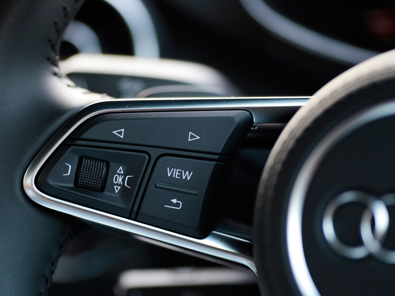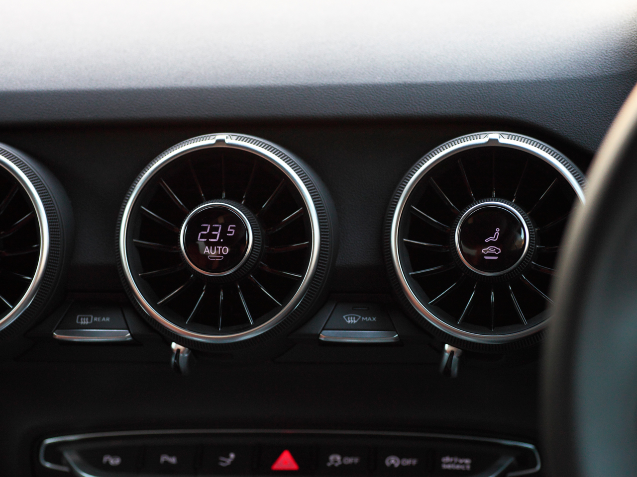 新しいTTクーペのドアを開けて運転席に座ると、ちょっと驚きます。センターコンソールに、21世紀のクルマには必須と思われていた大画面のディスプレイが、ない!