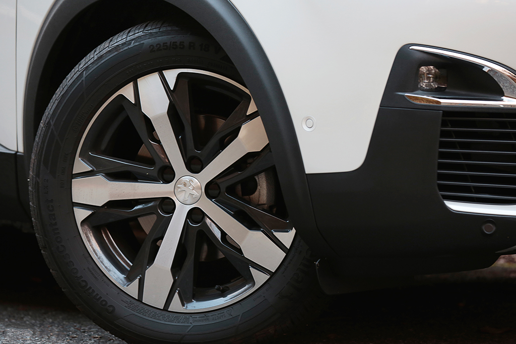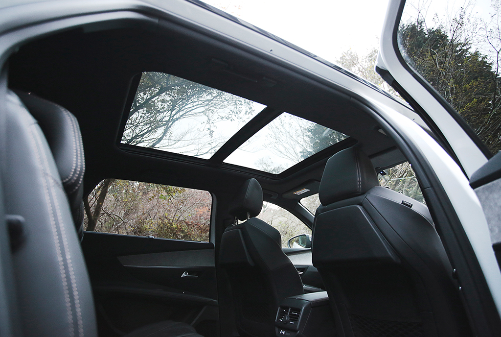 今回の試乗車は、ディーゼルエンジン搭載のGT BlueHDi。クロームが多用され、ライオンのエンブレムが強調されたフロントグリル。フルLEDのヘッドランプの上には、同じくLEDのポジションランプが並びます。饒舌で華やかなフロント回りですが、タフなSUVとしての威圧感は薄い。いかにもさり気ない都会派SUVです。試乗車の、ホワイトパールのペイント(8万1000円のオプション)にブラックダイヤモンドルーフの組み合わせもクリーンでいいけれど、ボディ各所にクローム仕上げのパーツが配されるので、ダークカラーだとさらに一層艶やかになりそう。