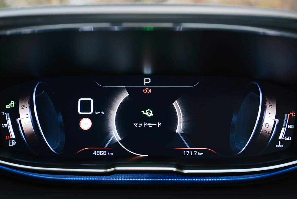 都会の風景が似合うプジョー5008ですが、スノー、マッド、サンドなど、5種類の路面において前輪の駆動力を最大限に引き出すトラクションコントロール“アドバンスドグリップコントロール”を備えて、一定のオフロード性能も備えます。