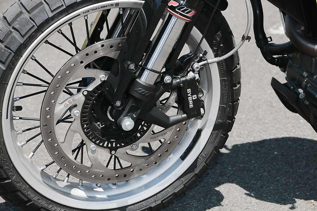 “オフ”の雰囲気を醸すヴィットピレンですが、サスペンションにはいわゆるオフ車的なソフトさはなく、むしろしっかり目。都会派スクランブラーにして、主戦場はオンロードといった感じです。